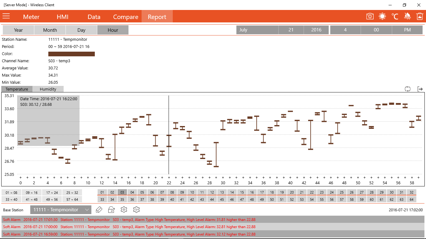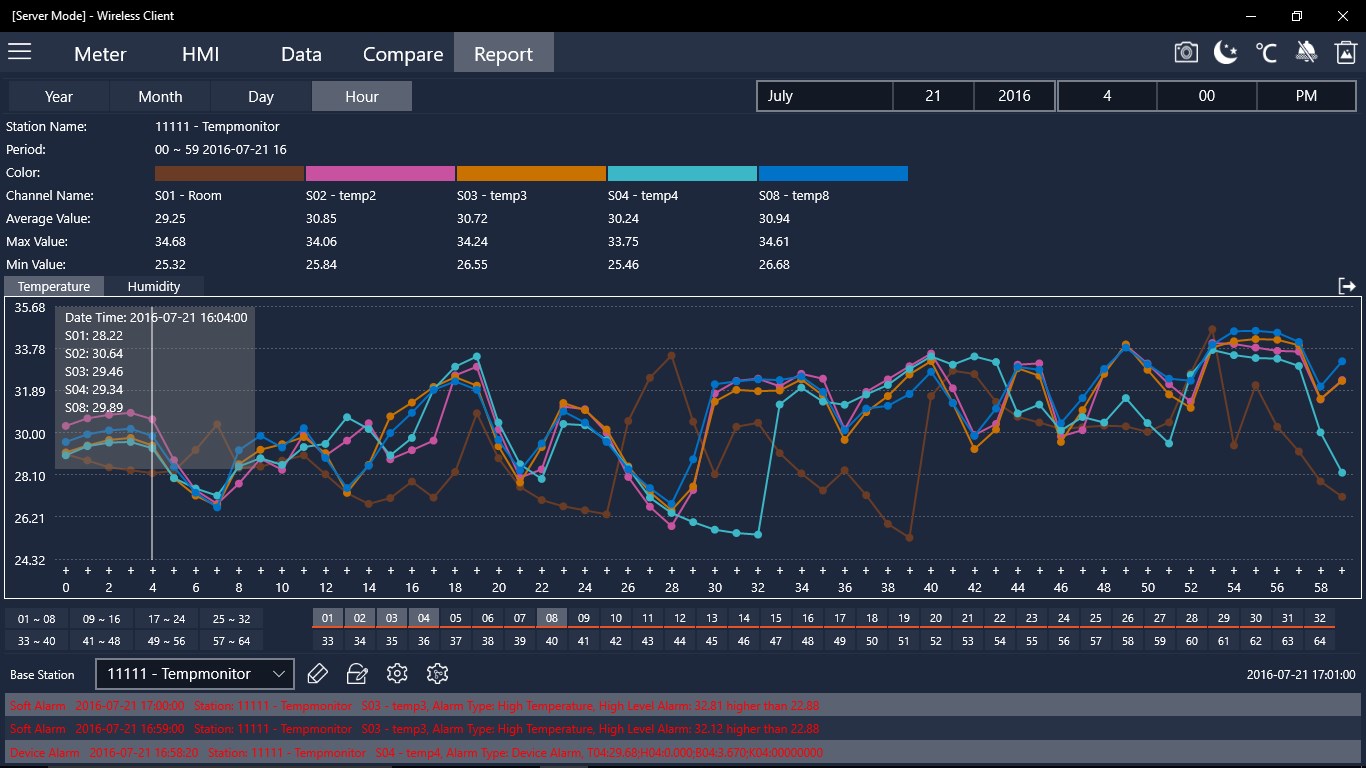 * Hourly, Daily, Monthly, Annual Temperature Report
