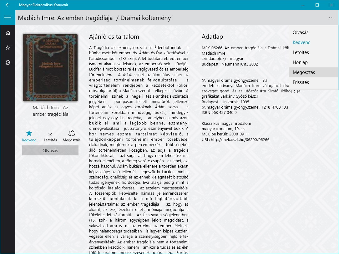 Hungarian Electronic Library (Magyar Elektronikus Könyvtár) app is a free browser and e-reader application for the National Széchényi Library of Hungary.