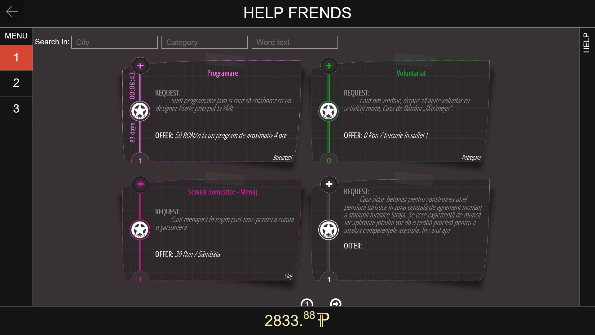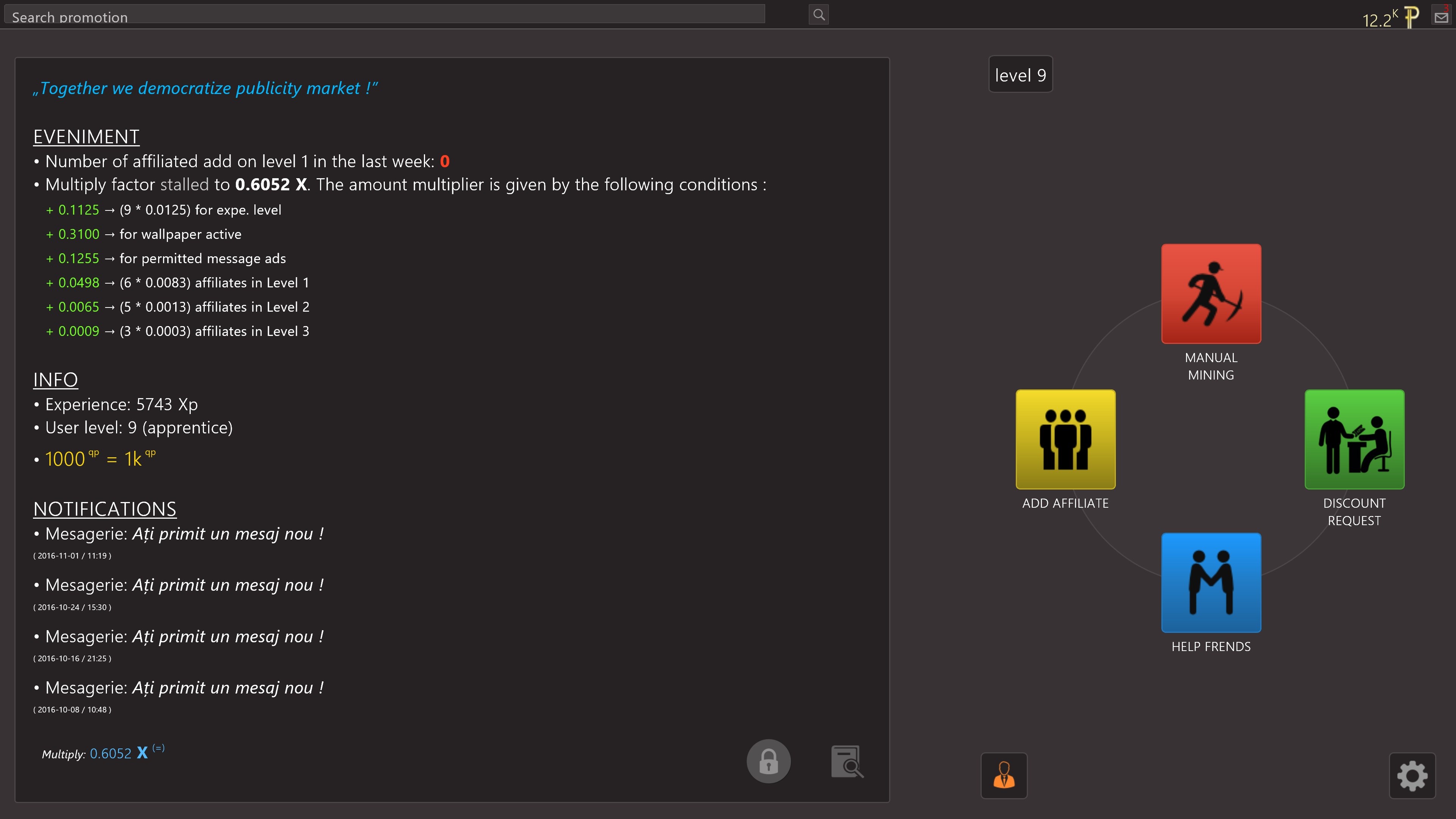 Do you want to make money from home but do not know how? It is very simple! Download the Gemini Publicity app and get started to work. From within the application you can create Publicity Coins, watching advertising and interacting with it. The app also helps to find out the latest offers from the shops in the proximity of your home. Moreover, through this application you will be able to receive vouchers, with which you can get discounts on shopping in your favorite stores. Do you want more? Of course, you can request, or bid, in app, helps from Gemini friends, creating micro-jobs (now if you want to move your furniture, have someone to help you). Want more than that ?? Gemini Publicity helps you to become a Publicity Broker and you can even create your own business, so that you and your family to live well! You want even more than that? .. Then install the application, uses it and you'll see how many benefits it brings Gemini Publicity!