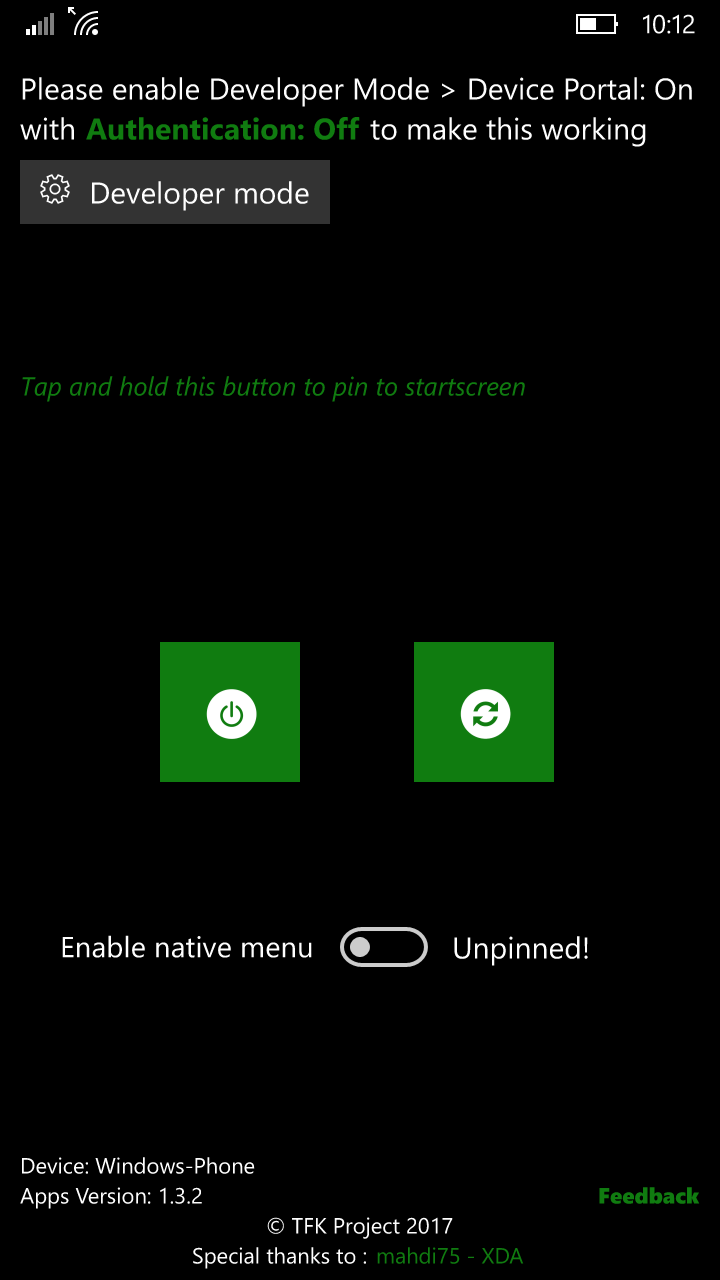 Now you can shutdown and restart your Windows 10 Mobile device only by tapping button in the screen, it's will save your power/lock button. If your power/lock button having broken or trouble, just this apps for power off / reboot your phone easily.