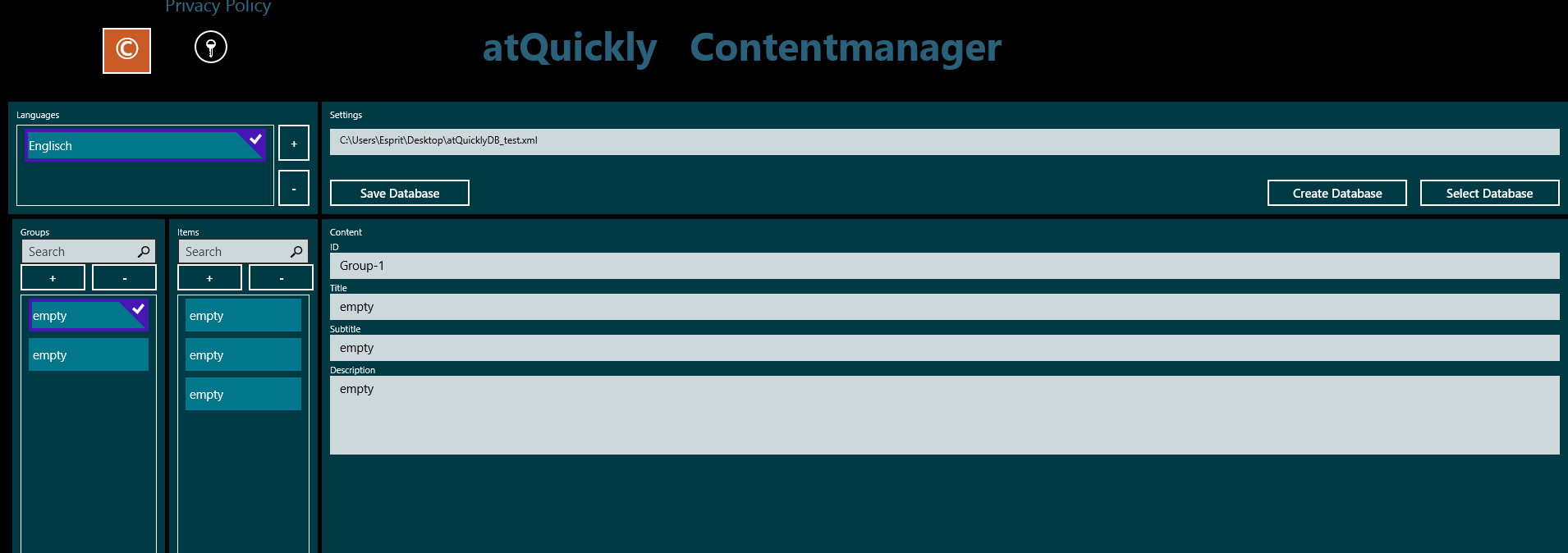 Mit dieser App können Sie Datenbanken erstellen welche Sie in der App atQuickly verwenden können.