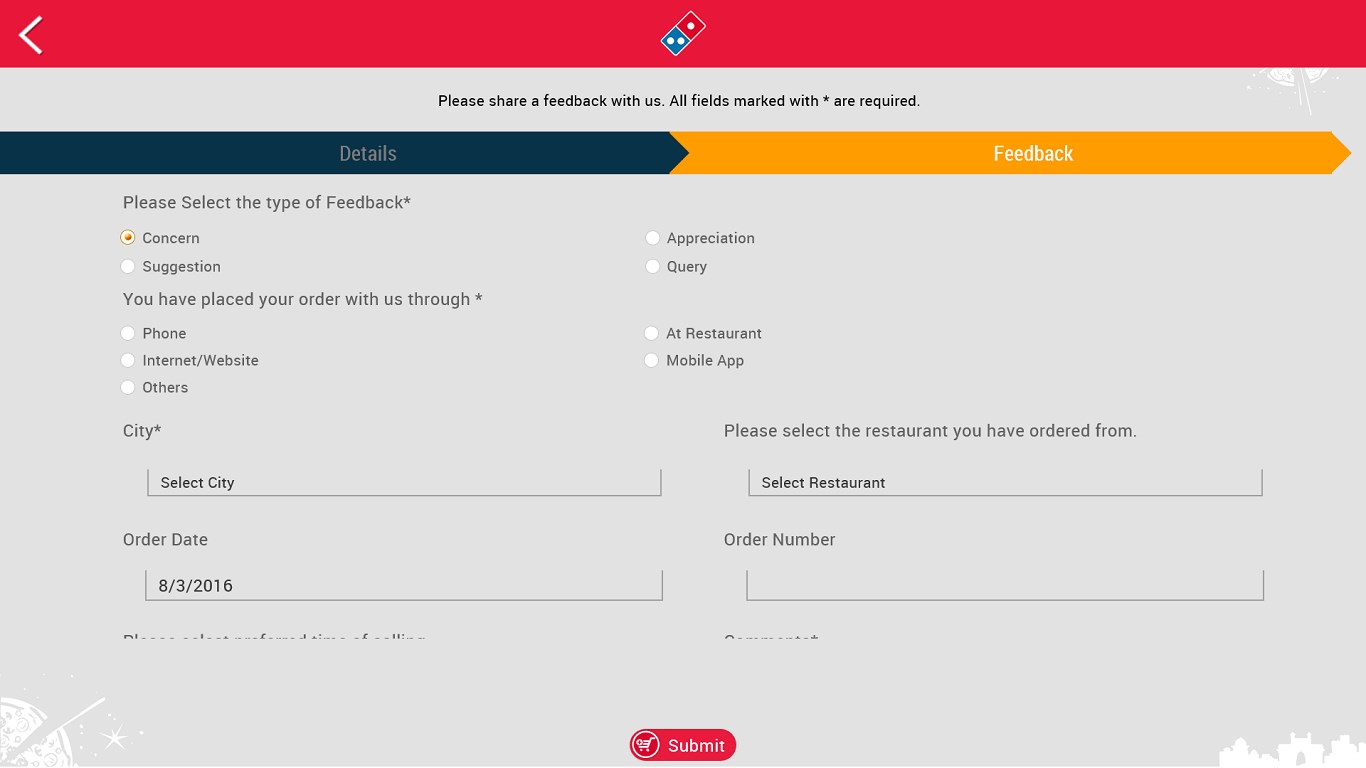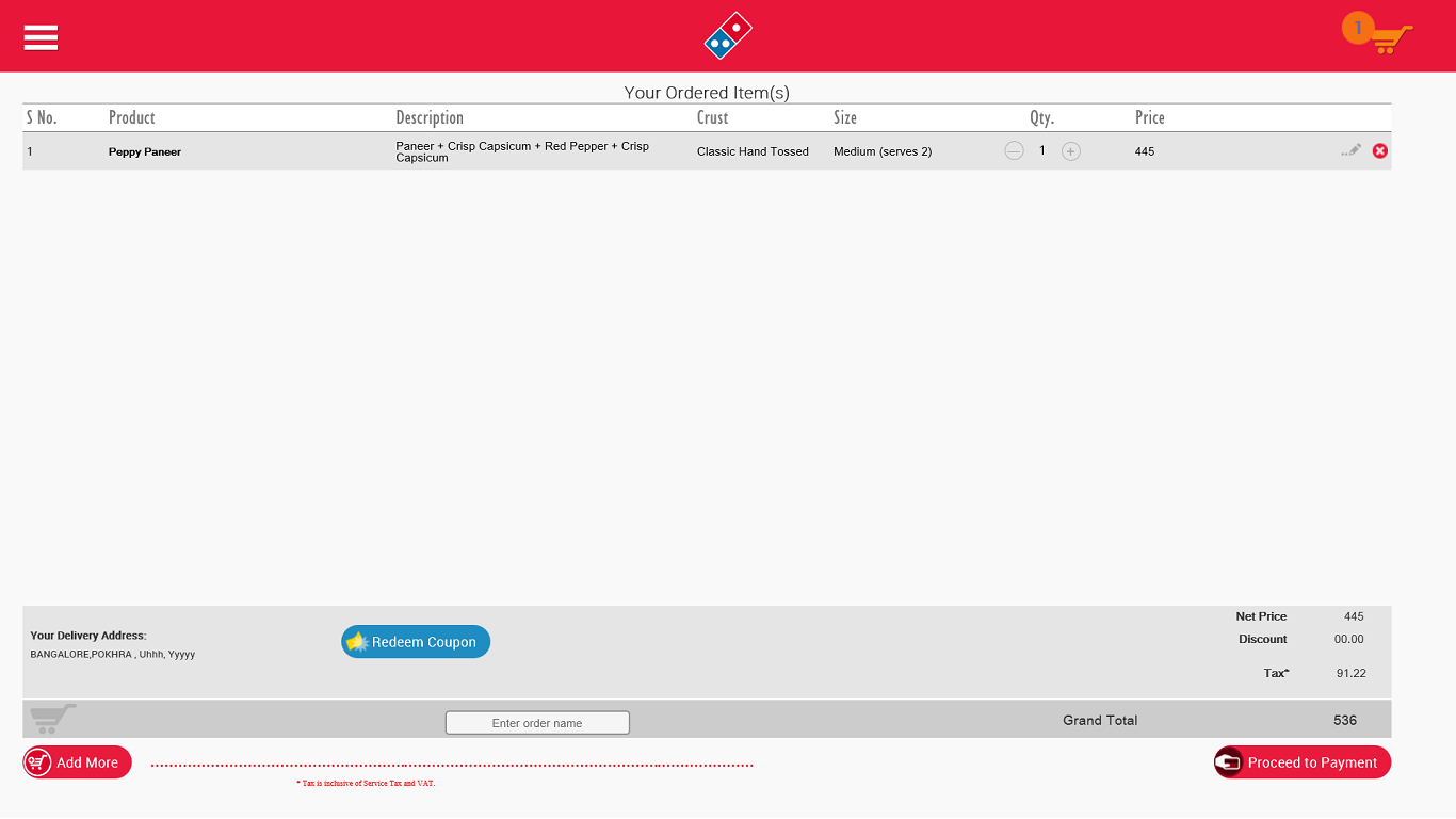 1- This is an official Tablet Ordering application of Domino\’s Pizza India.2- It allows you to view and use the complete menu and content for the purpose of placing an order directly at Domino\’s Pizza Restaurants.3- The application accepts all the valid coupons introduced by Domino\’s Pizza India. 4- The delivery promise of 30 minute guarantee is applicable for all orders placed through this Tablet Application. 5- For more details please refer to information and T&C section while placing your order. T&C Apply.