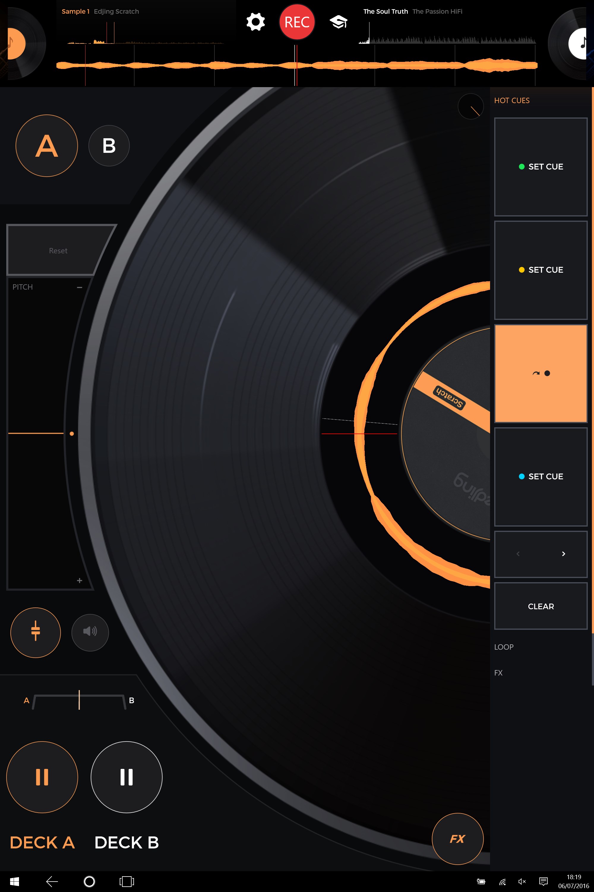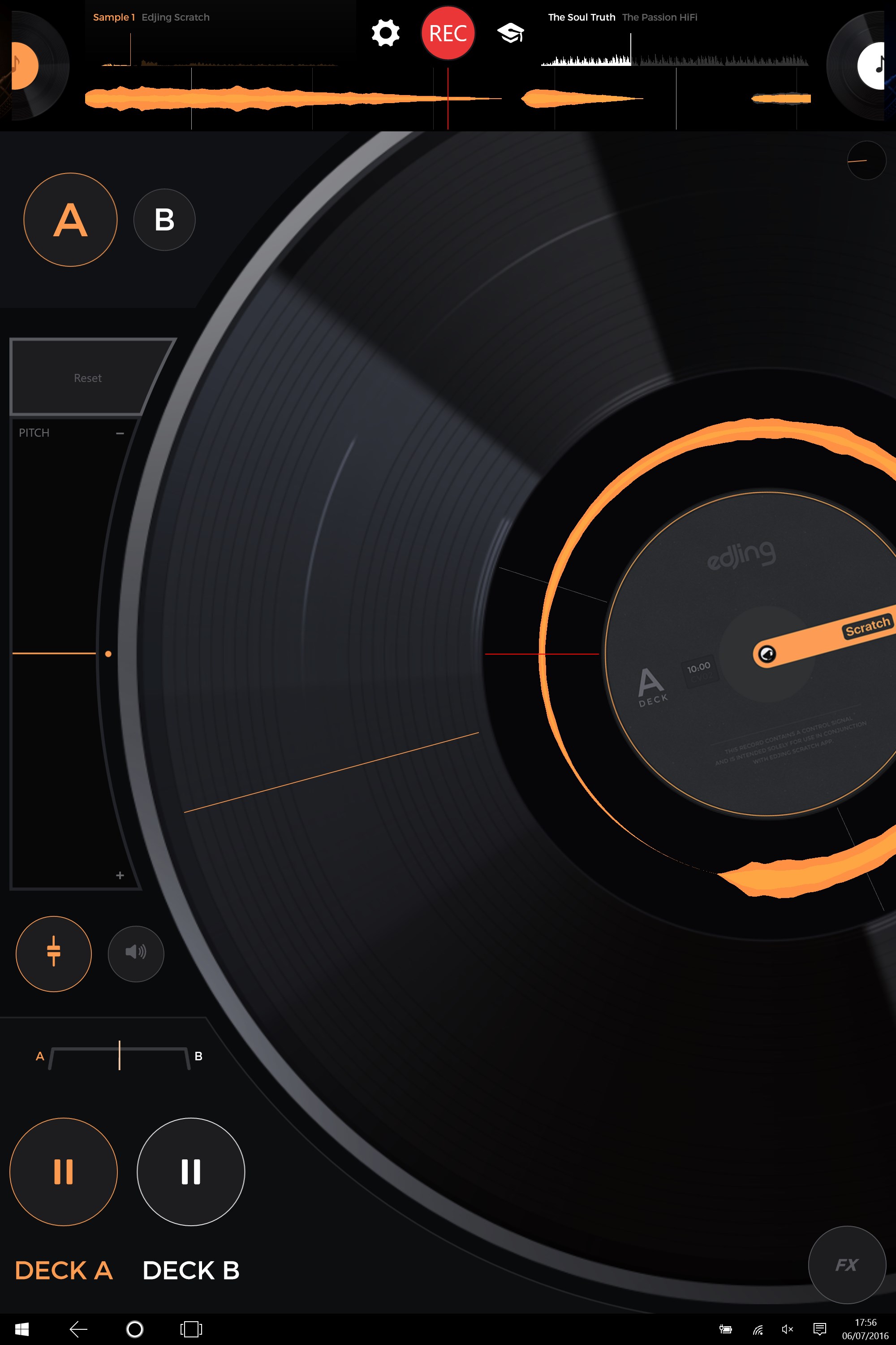 Mixfader dj emulates the real vinyl behavior and its sound rendering for the best scratching experience.