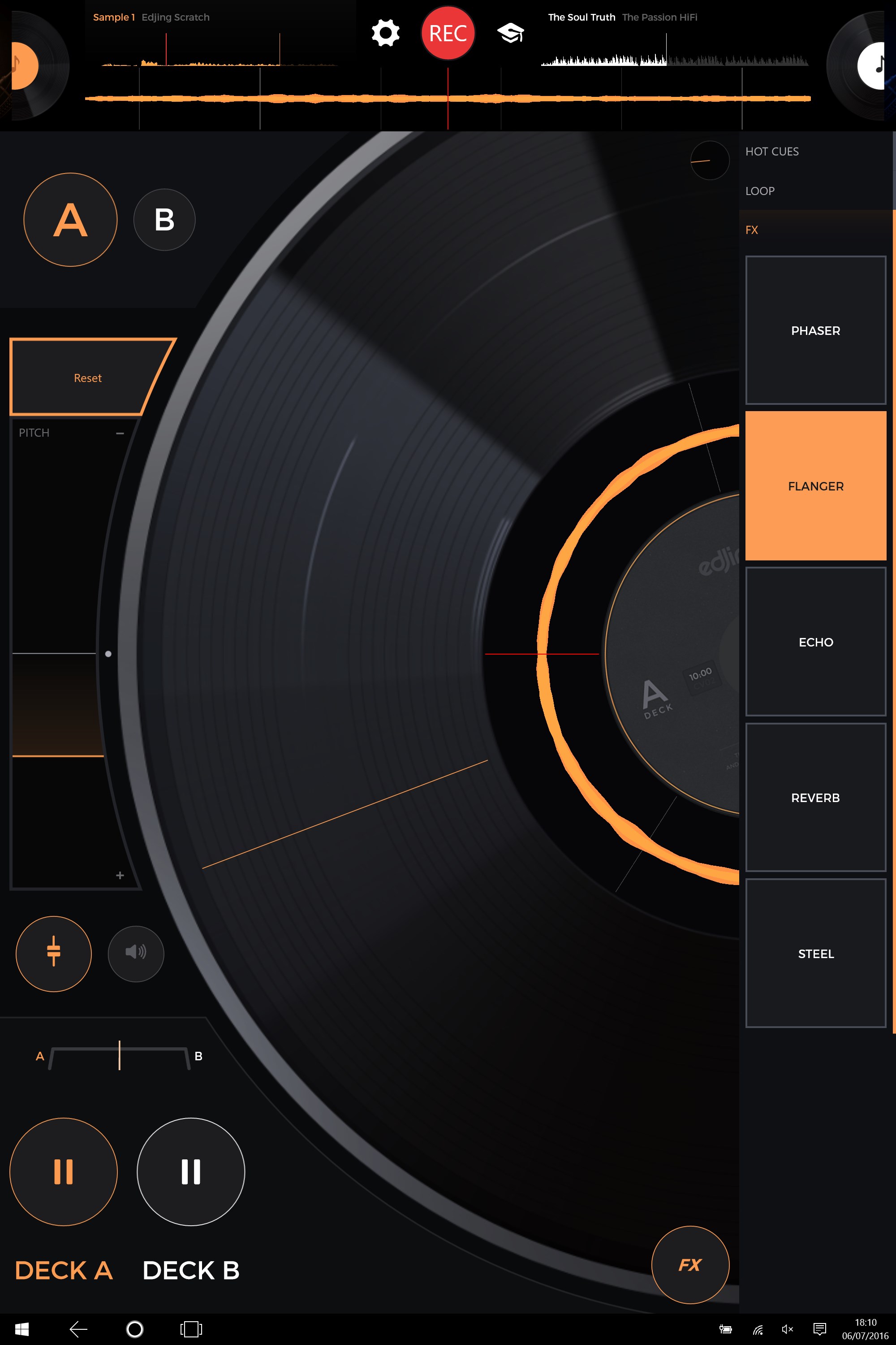 - possibility to switch between deck A and deck B in a click