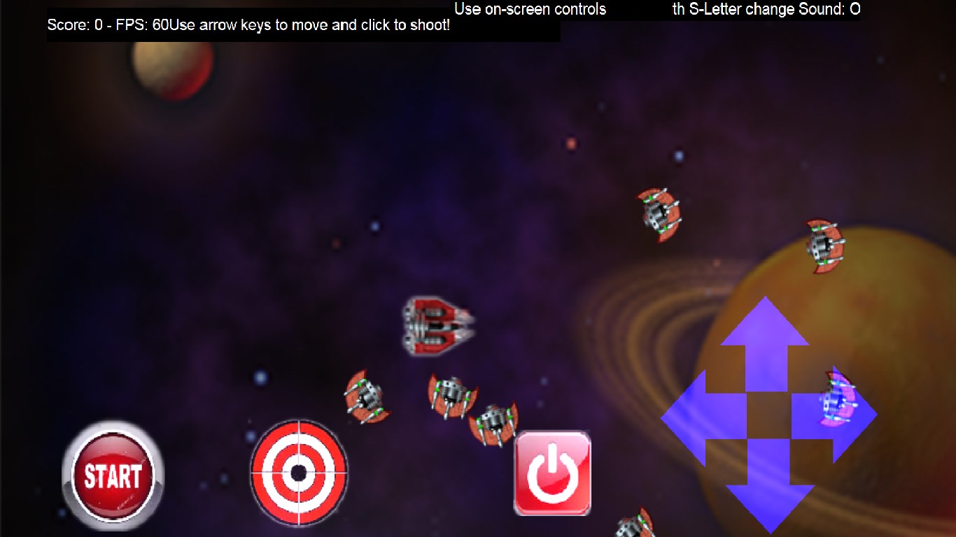 Game works with touch screen or keyboards. With s-key you get fighting, laser and explosion voice away.