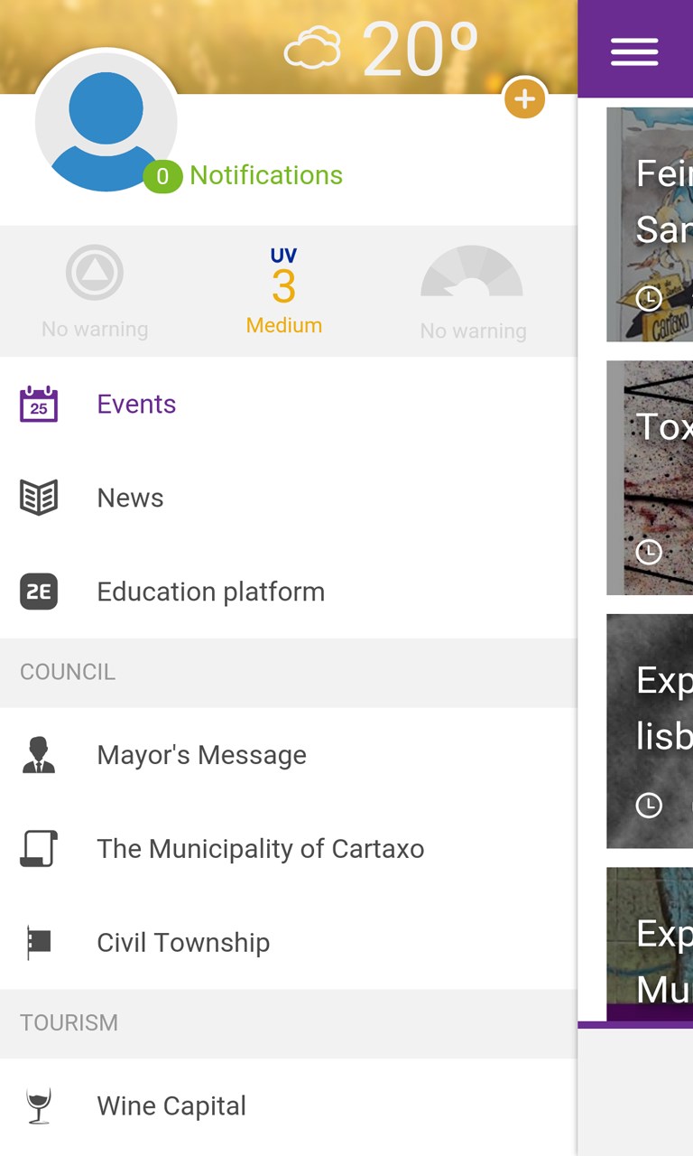 Application that aims to promote news and events, spread of information and tourist and cultural promotion of the municipality of Santarém. The group of features will soon be available and the municipality will be able to communicate and receive direct feedback from the citizens, by providing some services. Key features: . Consultation of local information . Cultural agenda . Consultation of news, . Notifications; . Sending of occurrences . Weather informations; . Sugestions; . Large item collection; . Pharmacies; . Meeting request; . Civil Protection; .Waiting Room.
