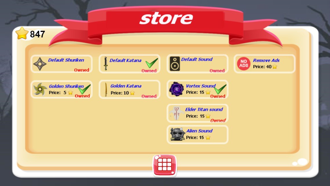 * In-app store with new golden weapon and special annoying voice