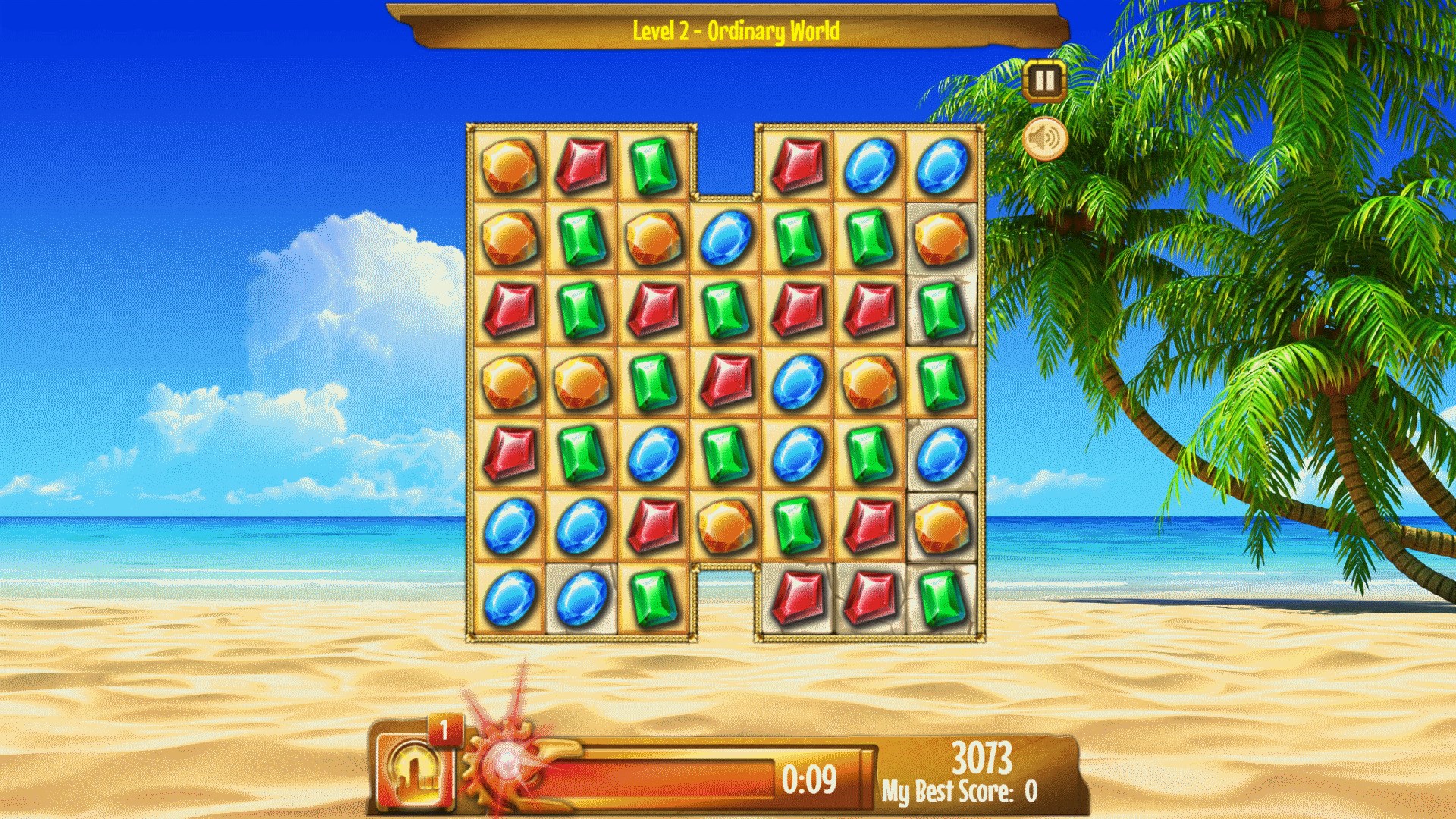 In Jewels Crush Adventure you must match jewels of the same kind. Match three or more objects of the same color in the map in any horizontal or vertical direction to get points. Turn all tiles into gold to win a level. Play all the levels and have fun! Destroy more objects to get bonus points.