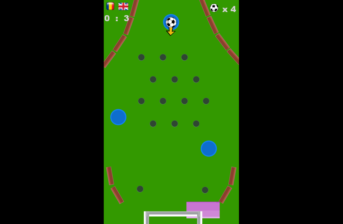 Soccer game, mixed with a pinball twist! England is up by 3, can you win in 4 shots.
