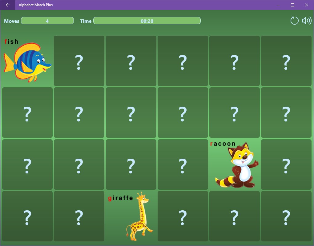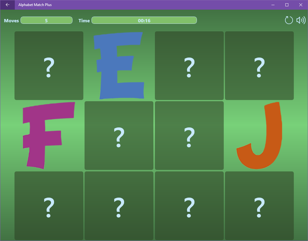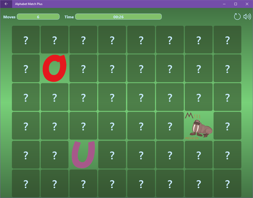 Alphabet Match Plus is a fun and educational game that combines a popular memory pair matching game concept with an easy-to-learn approach to memorizing the alphabets of various languages. With Alphabet Match Plus you can relax with the simple pair matching mode or you can choose an advanced "letter to word" option to practice memorizing foreign alphabets, letters, and words.