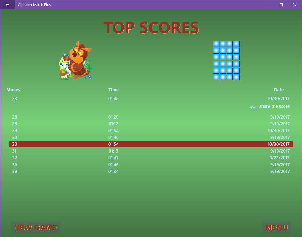 - Keeps the top local scores for all levels and modes