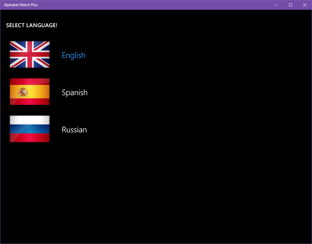 Multiple levels and options to choose fromSupports 3 difficulty levels (easy, medium, hard)3 pair matching modes (letters, letter-to-picture/word, and simply cute images)Multiple languages to choose from (English, Spanish, Russian - with more to come)Text-To-Speech technologies provides an easy and effective way to learn how the foreign words sound.Keeps the top local scores for all levels and modesProvides a way to share best scores through Social Media or Email/SMSSupports Live Tiles and Toast Notifications/RemindersEasy-to-learn approach to memorizing the alphabets of various languagesKids love it! Best memory game with sounds and pronunciation Learn Spanish and Russian alphabets, letters, ABC, and soundsABC letters and phonics for pre school kidsBest matching and memory game