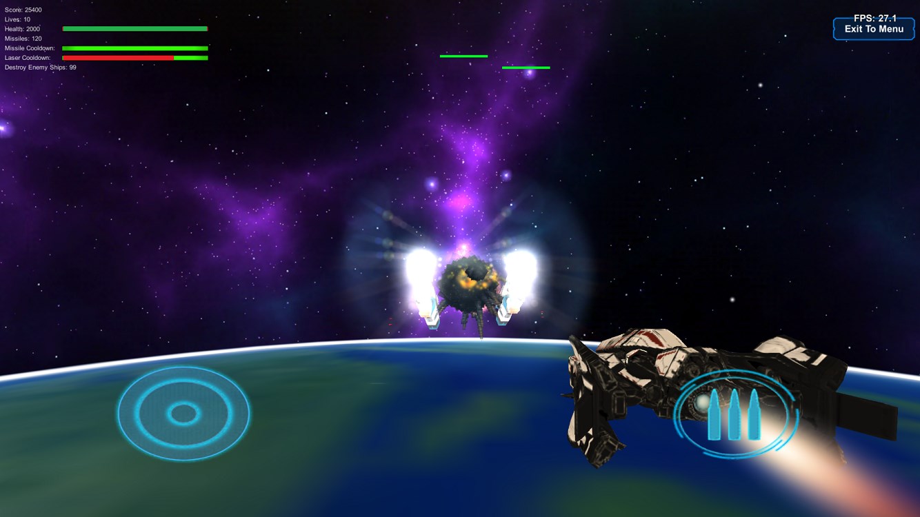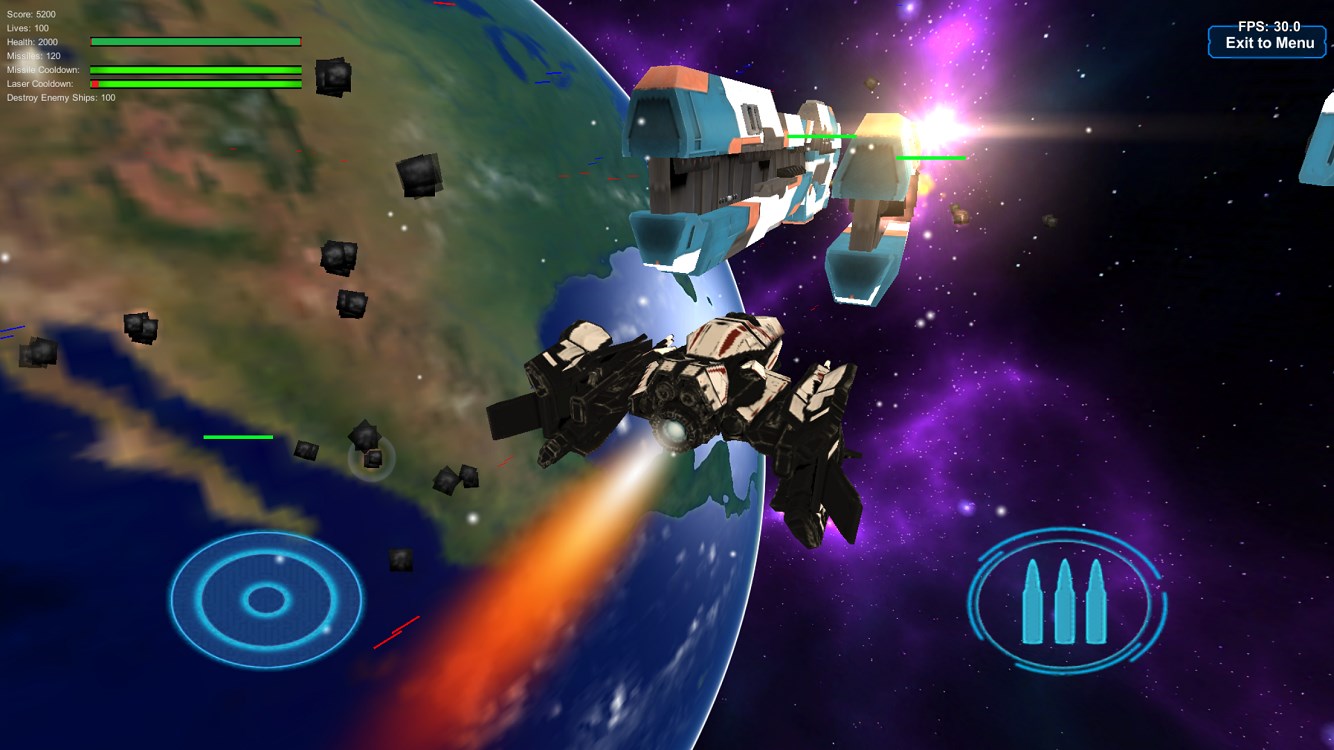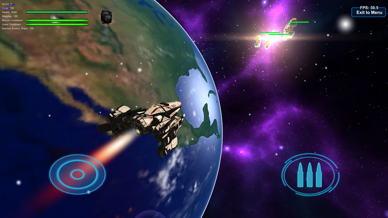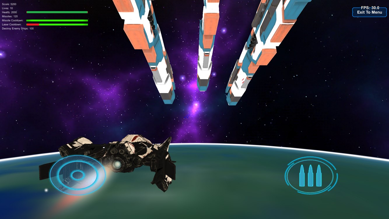 Pilot Earth’s latest Tactical Orbital Fighter to intercept Extremists Ships from entering Earths’ atmosphere to stop the enemy’s strategic coordinated attack on Earth’s key Space Launch Platforms and Bases. Defend Earth!