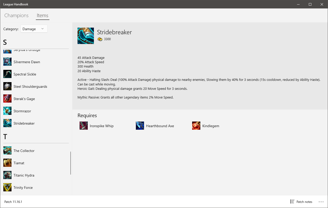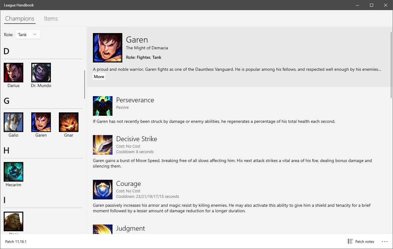 League Handbook is a digital reference book for League of Legends. It works across all your Windows 10 devices and automatically stays up-to-date with the latest champion and item information.