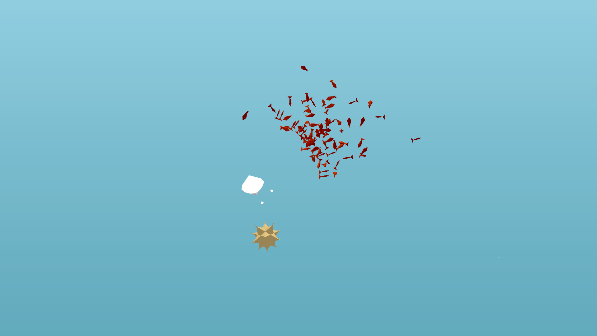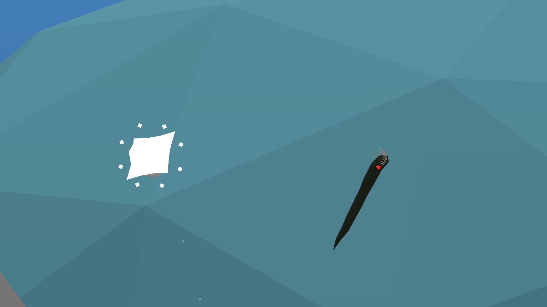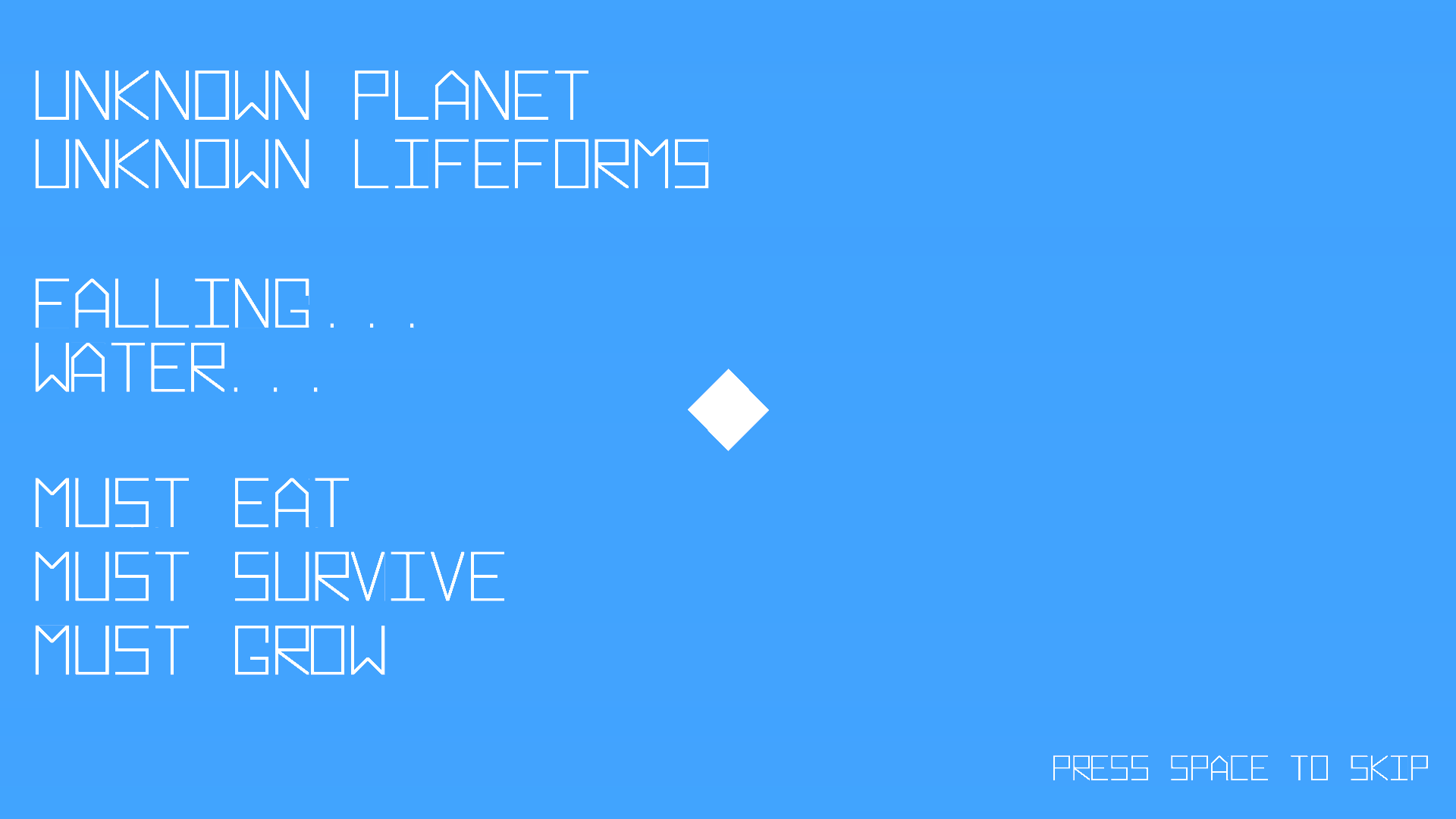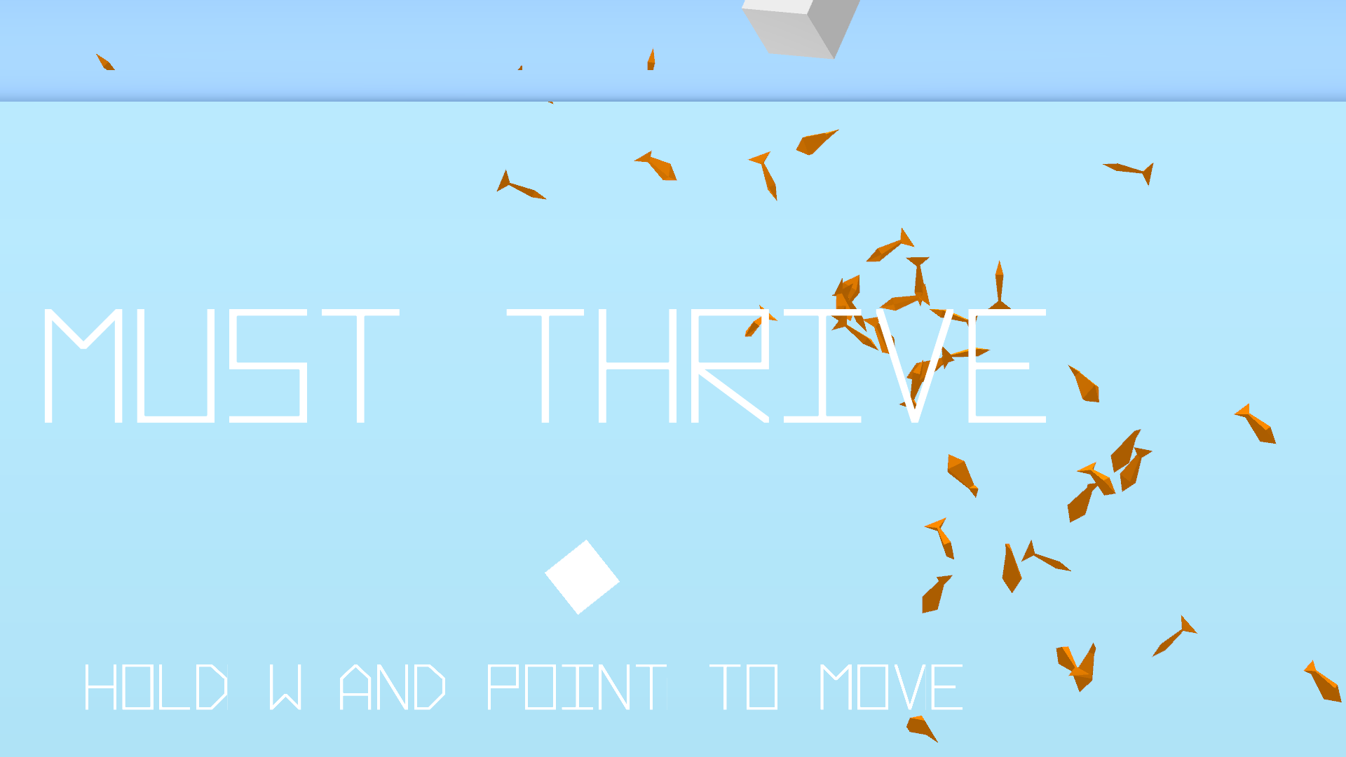Must Thrive is a small game that explores an alien life form entering the Earth's ocean. This creature starts as a simple geometry, but as it consumes complex life around it, it grows to become more complex, gaining abilities such as sonar and teleportation.