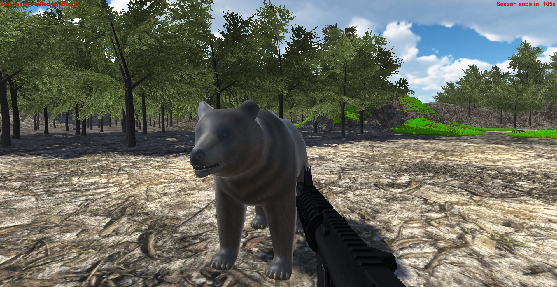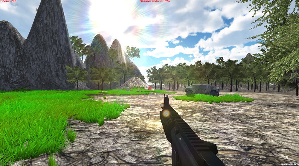 A first person shooter, hunting simulator. 120 seconds to kill as many animals as you can. Return to the hunting vehicle before time is up.