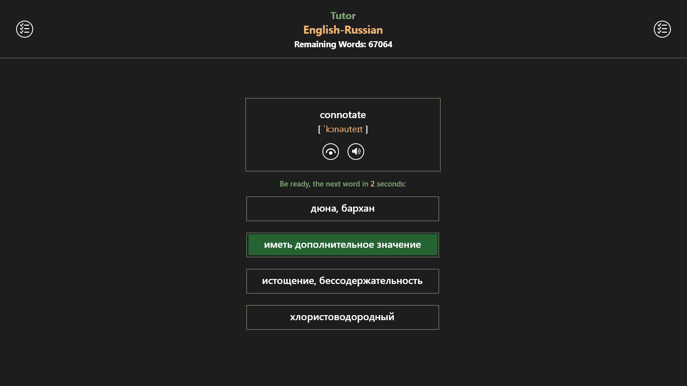 The application does not contain any advertising and limitations in functionality. If you like Dictutor and use it actively, you can donate to the developer via in-app purchase.