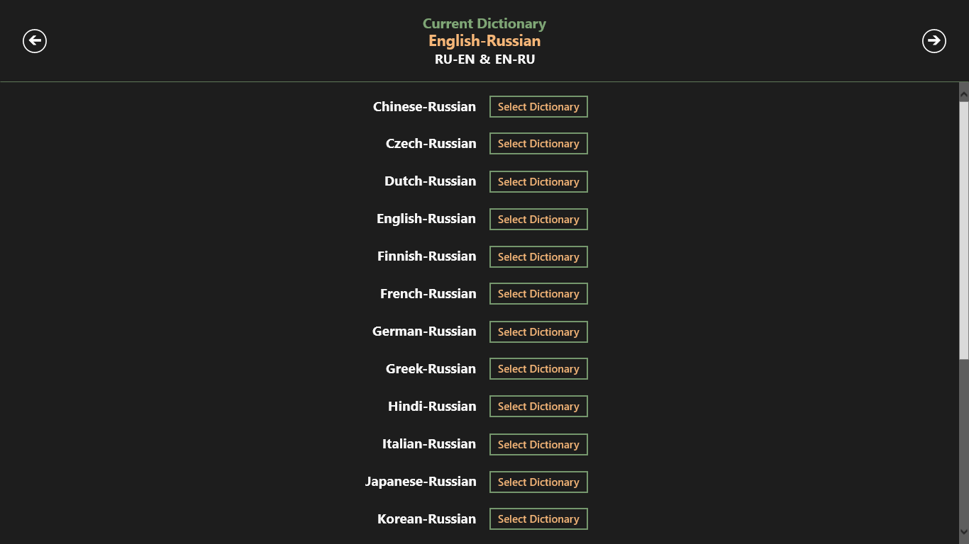 English-Russian dictionary & Russian-English dictionary, EN-RU (>67 000), RU-EN (>75 000).