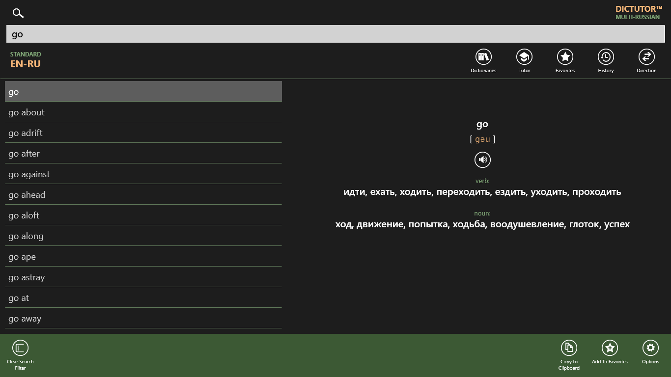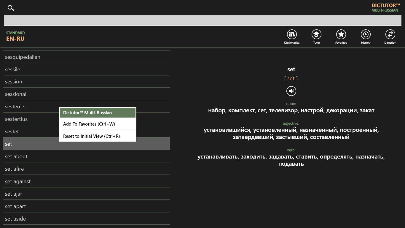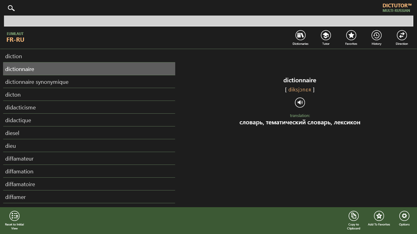 Dictutor MULTI-RU is an impressive bundle of 20 offline dictionaries with electronic tutor for Russian speaking users. It’s the powerful tool for mastering foreign languages. Dictutor lets you instantly translate and effectively learn new foreign words.