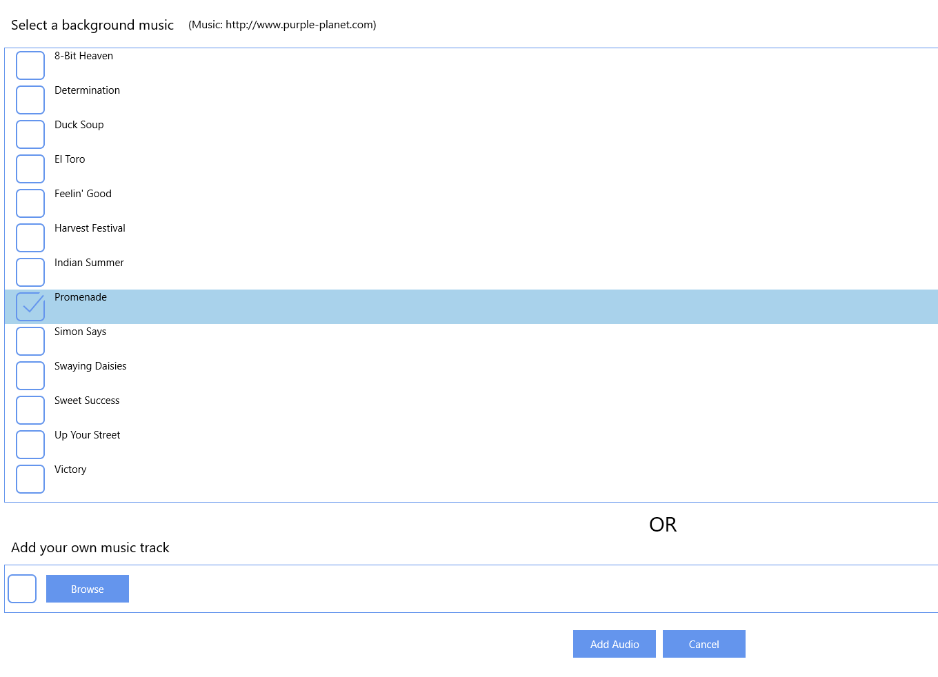 2. Select an audio track for the background music