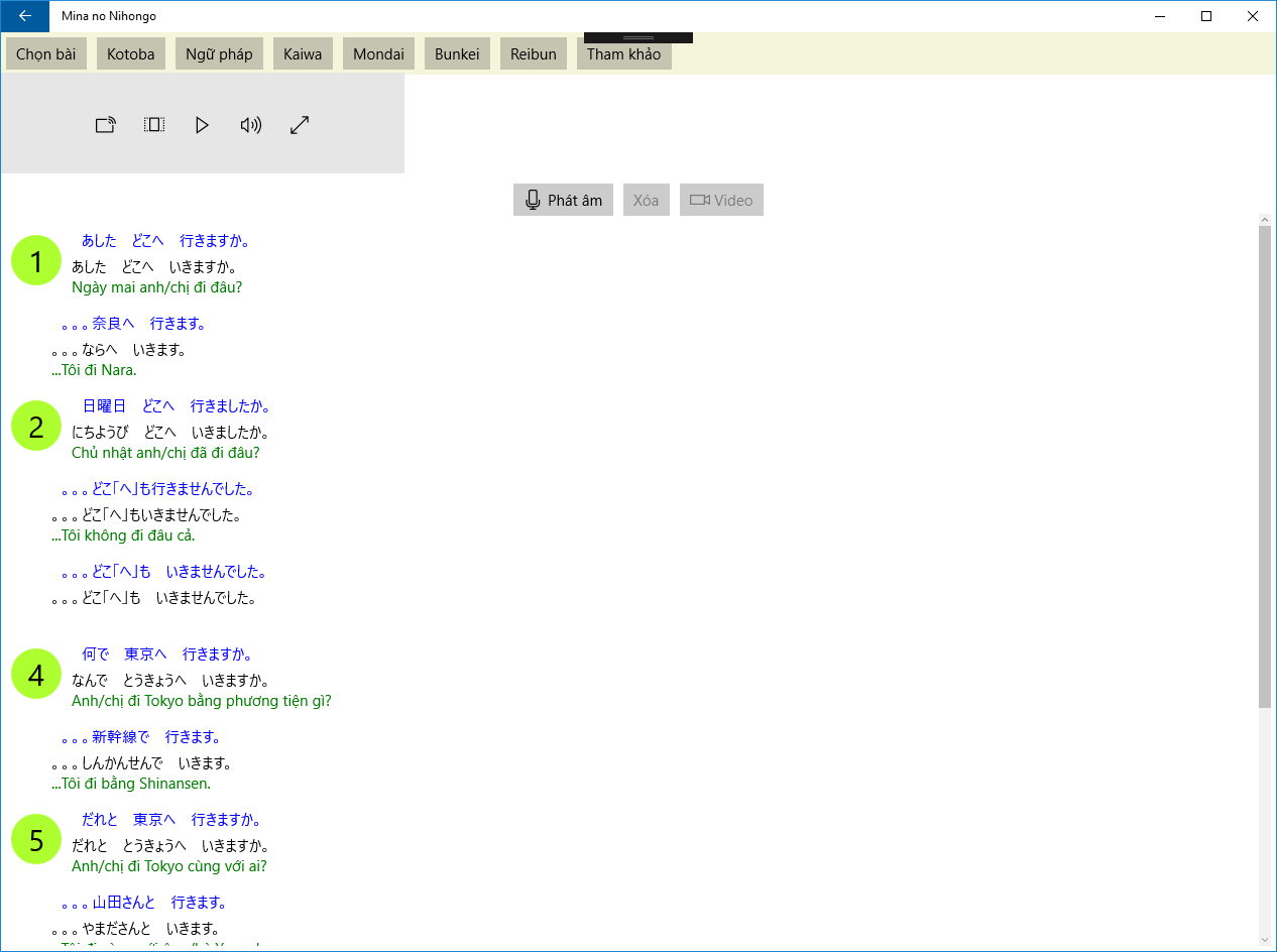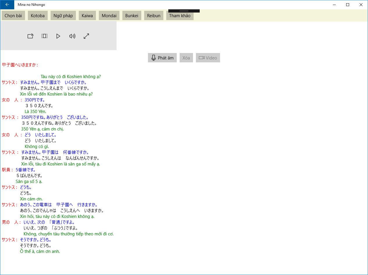 Basic sentence patterns incorporated into short dialogues to show how they are used in actual conversation. New adverbs, conjunctions, and other parts of speech, plus further learning points, are also introduced.