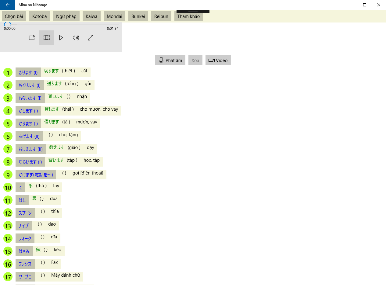 The App have been compiled with the aim of inculcating the four skills of speaking, listening, reading and writing.There are 50 lessons, each containing the following: