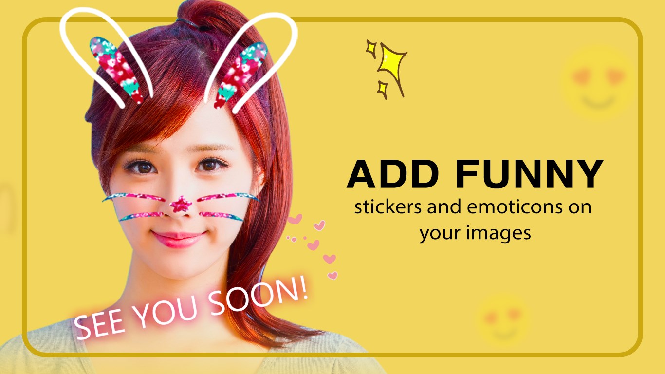 Decorate your images with photo filters & stickers for your face for free and explore the extra delightful features of the app. Perfect application for image customization and entertainment.