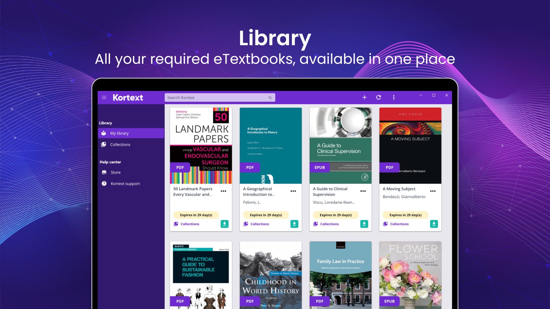 * Kortext Library is now available. Within Kortext Library, you can access content provided by your institution.