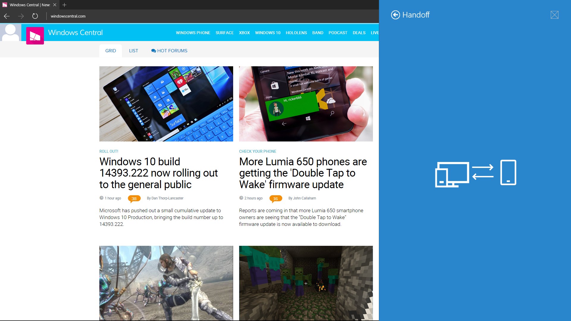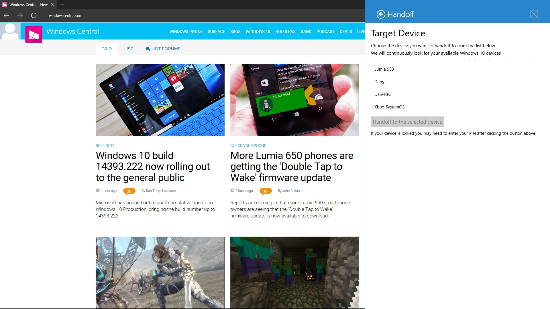 - Share an article from the Windows Central app - If you have "Apps for Websites" enabled it will load the article in the WC app on your other device
