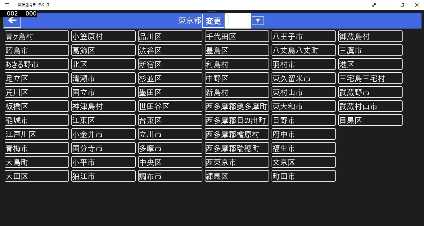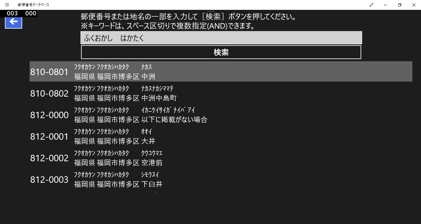 郵便番号(の一部)や、地名(の一部)で検索できるようにするアプリです。