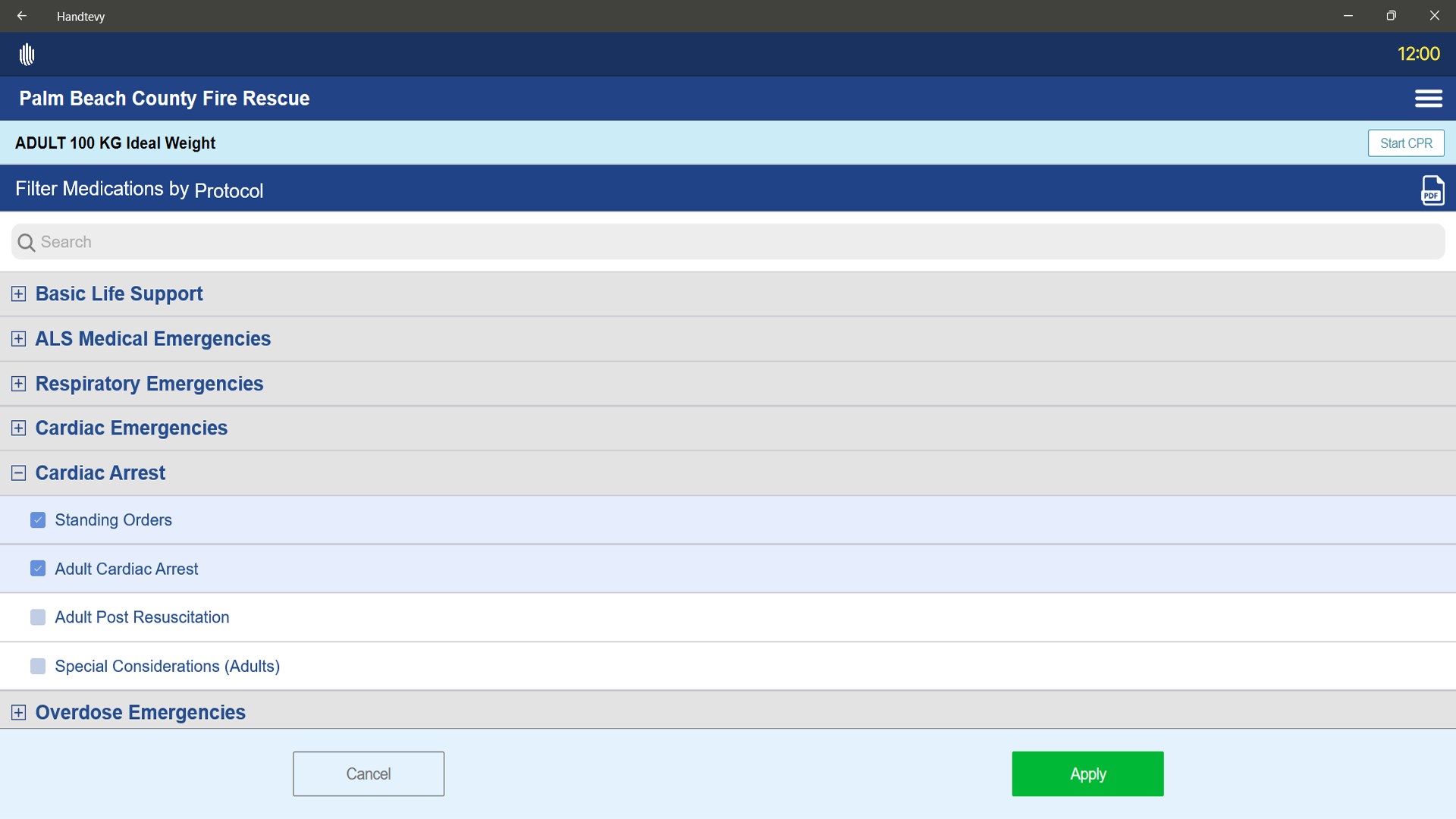 Medication and equipment list that is customized for your agency or hospitalRapid, one-touch visualization and documentationCan be used offlineIntegrates with leading ePCRs and EMRsProtected health information (PHI) not utilized on the applicationInformation not stored on the applicationCPR AssistProtocols and Checklists