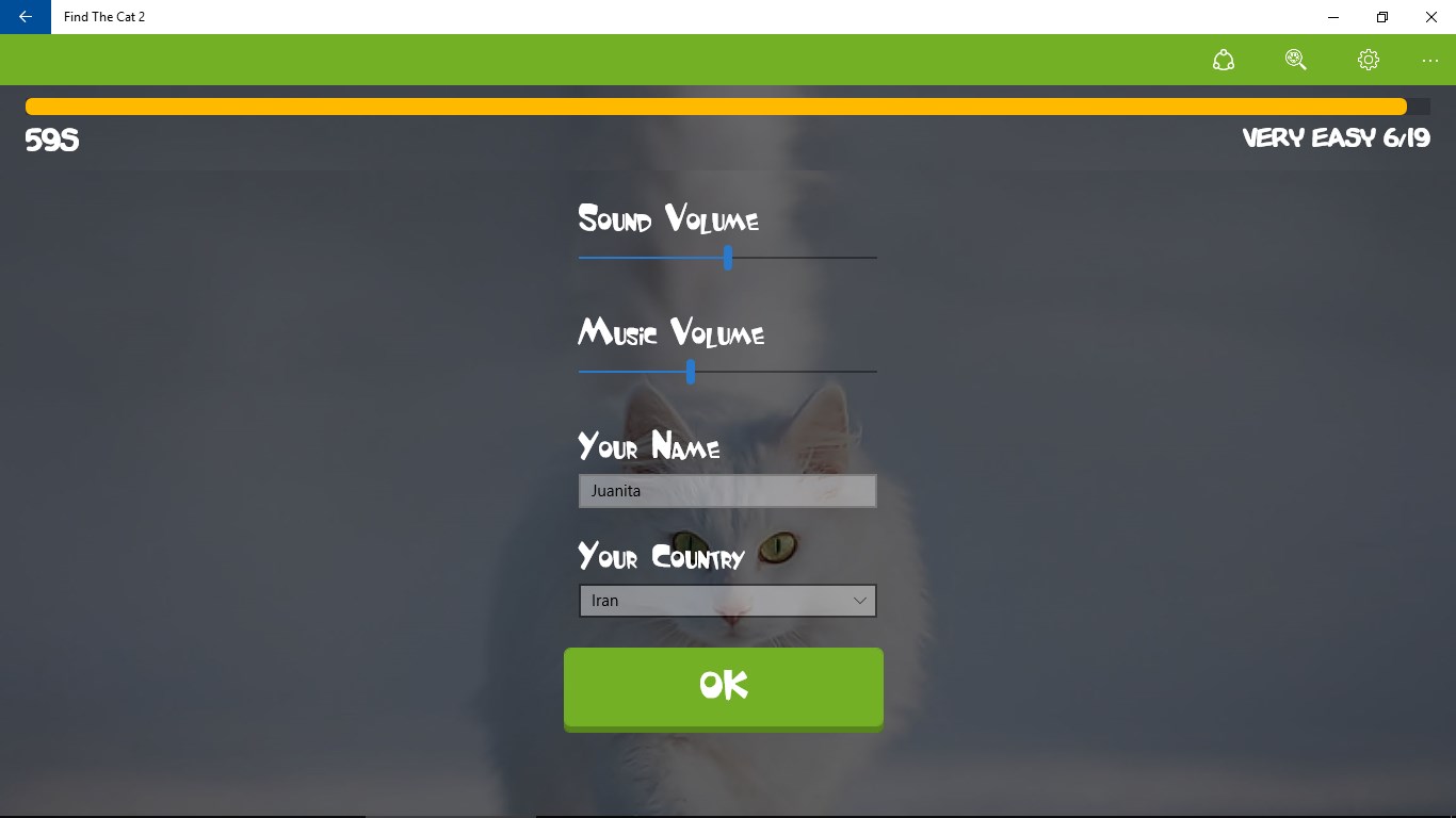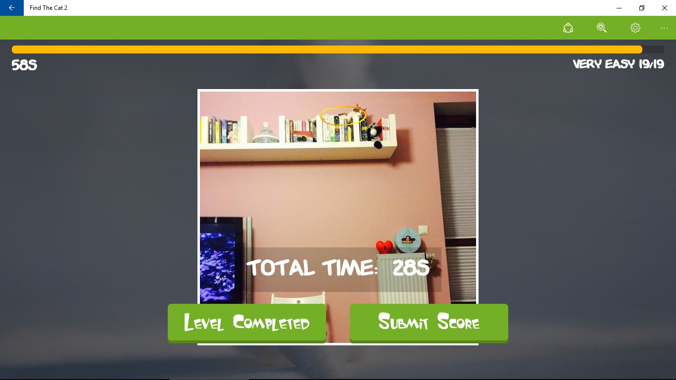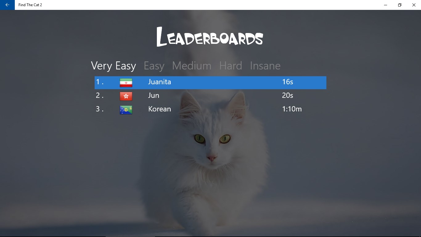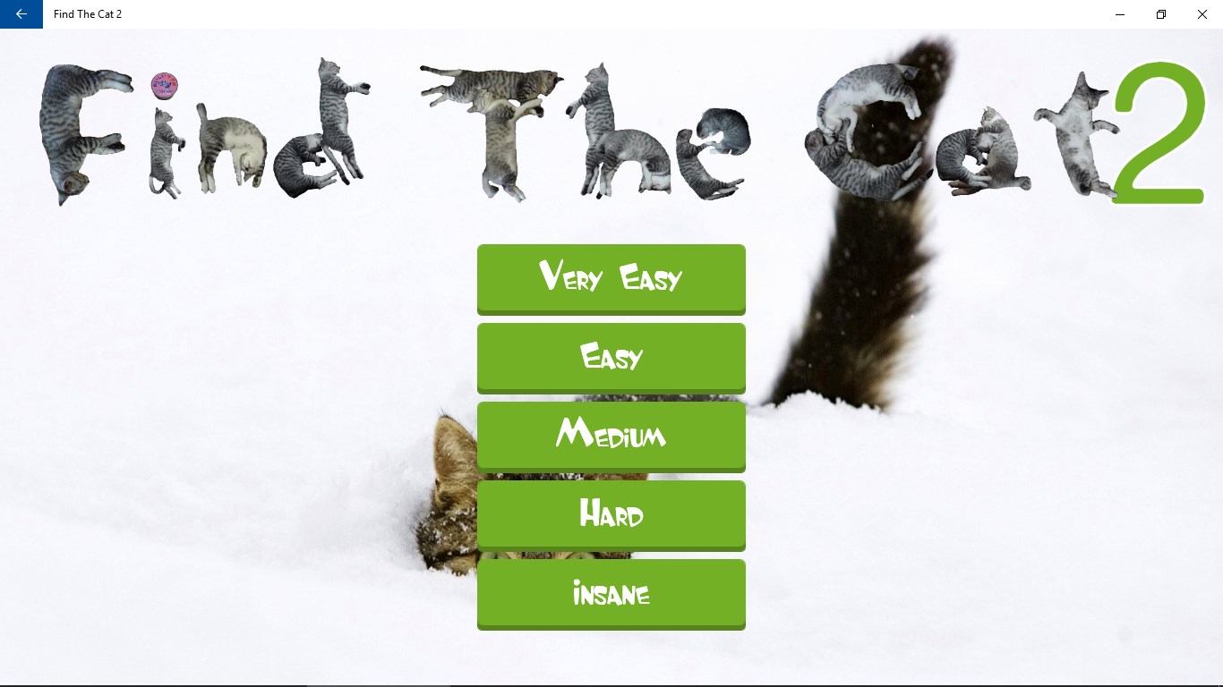 A follow up to Find The Cat 1More cute cat photosPinch to zoomSubmit your time to the online leaderboardWindows Universal App
