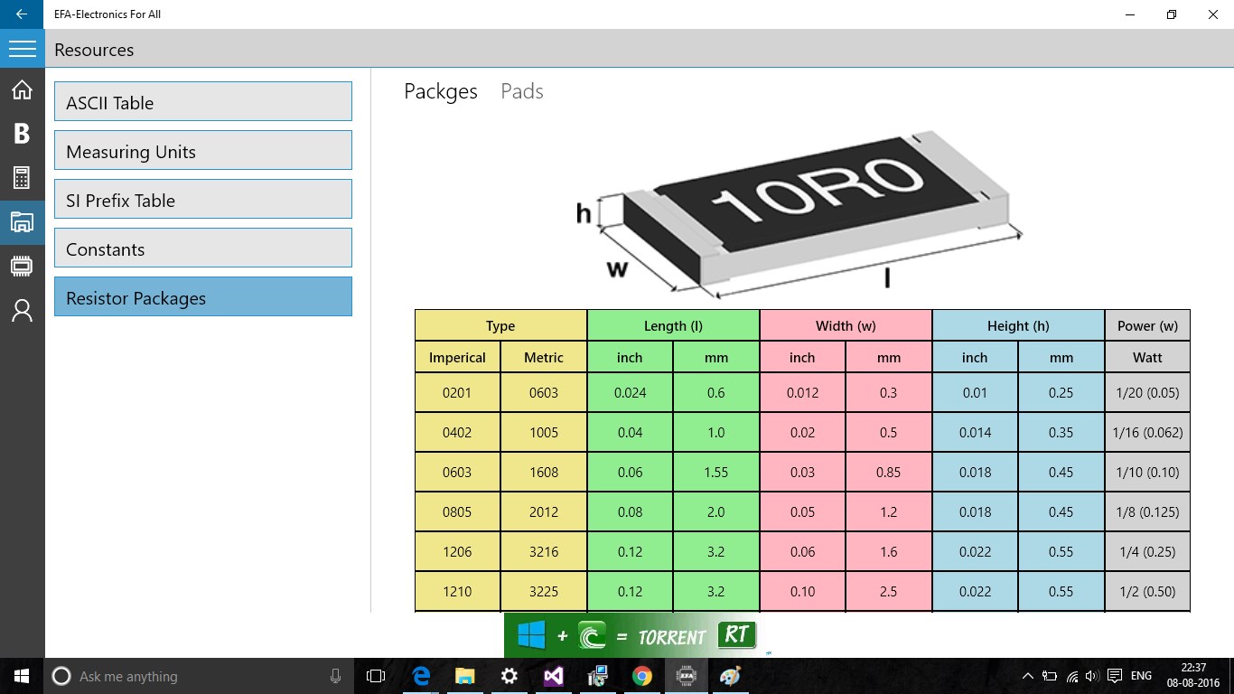 3. Resources - ASCII Table, Measuring Units, SI Prefixes and Resistor Packages.