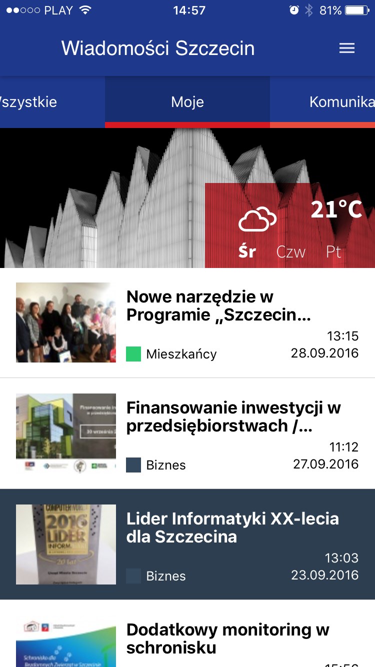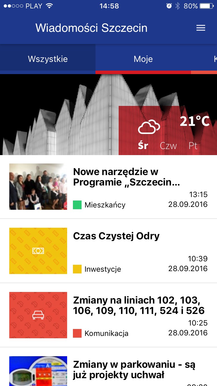 Wszystkie informacje z miasta zawsze pod ręką. Wybierz interesujące Cię kategorie, śledź tylko te wiadomości, które chcesz i dziel się nimi z przyjaciółmi!