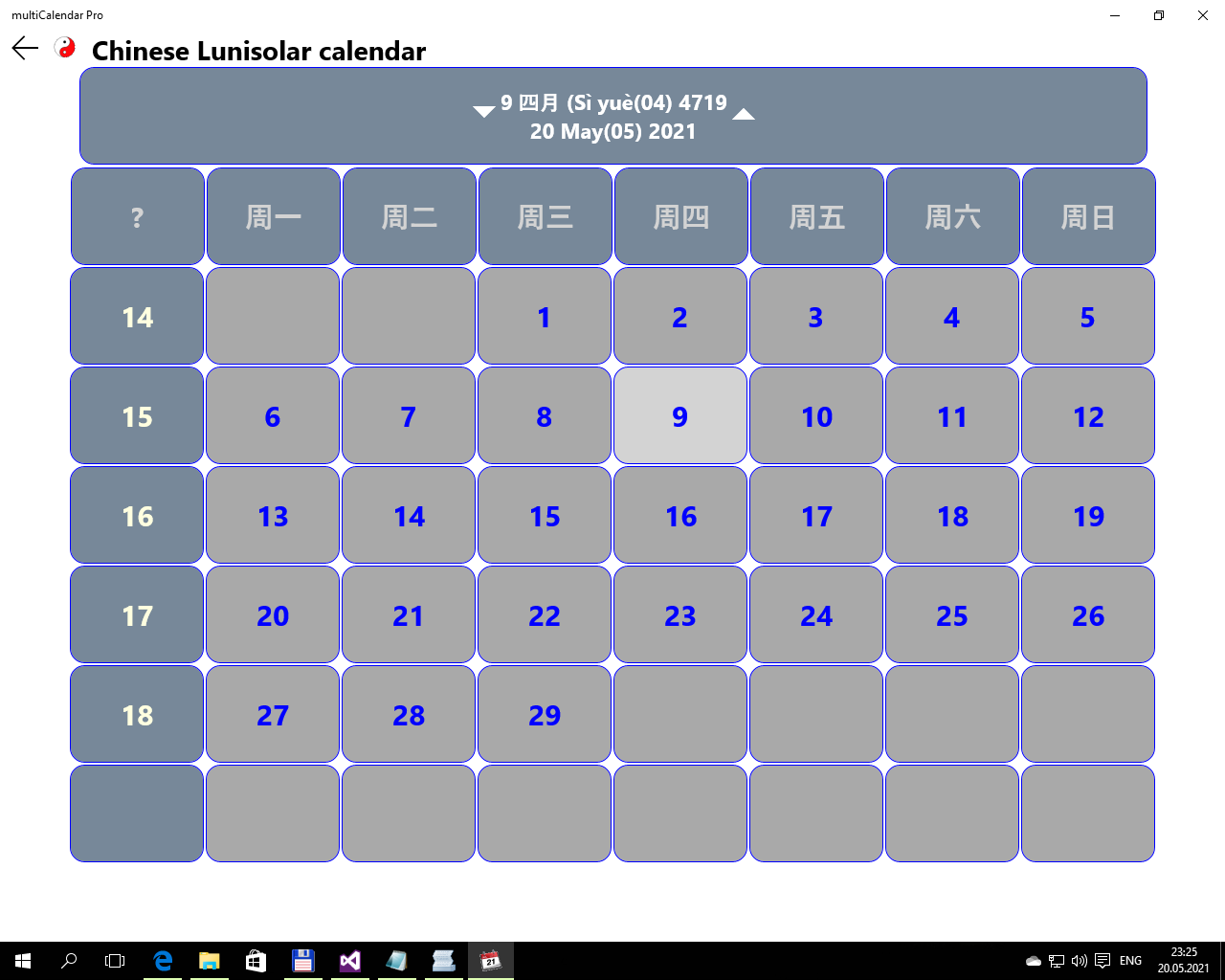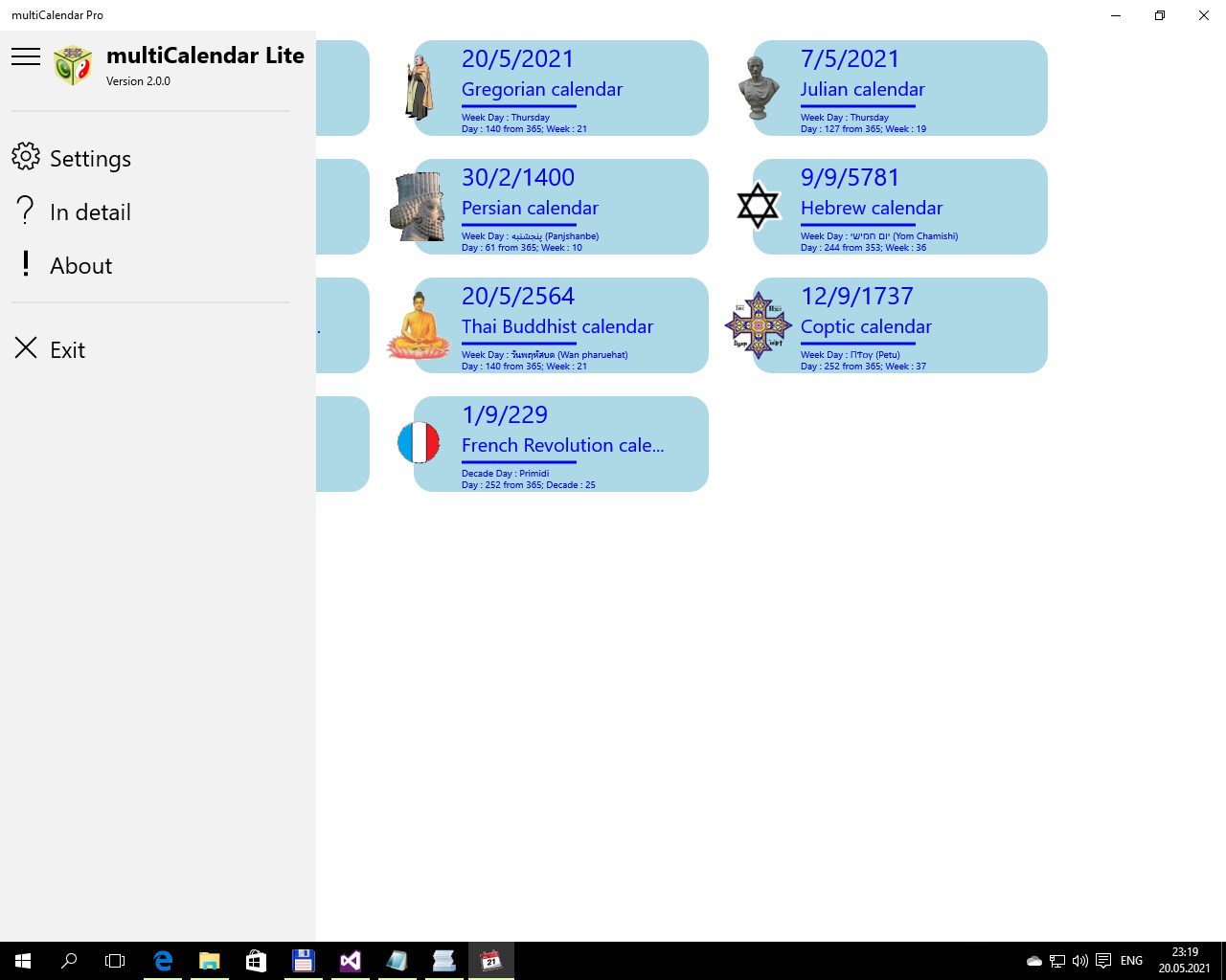 multiCalendar combines in a single application acting and "not very acting" calendars of various nations, religions and cultures on your device.