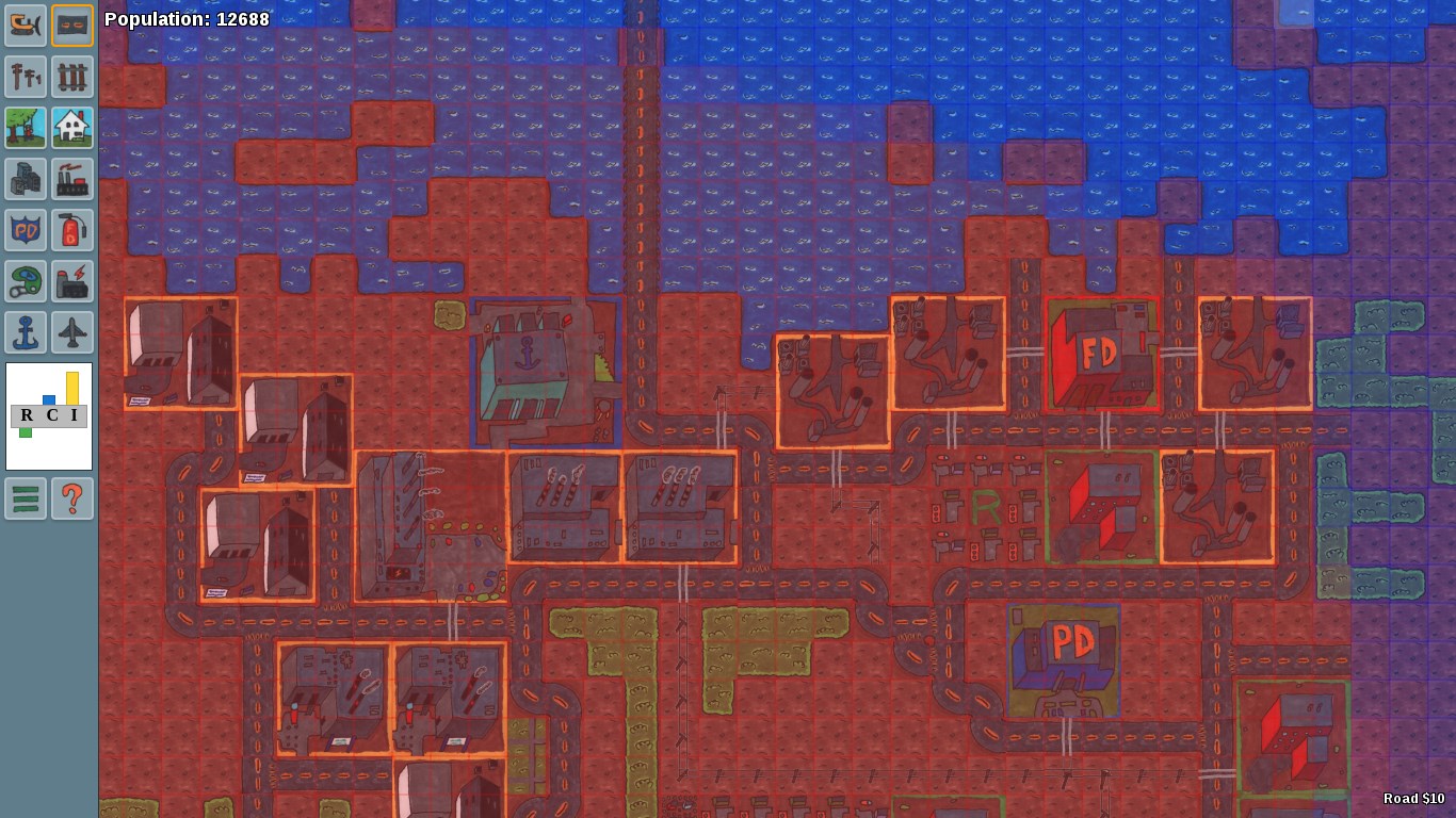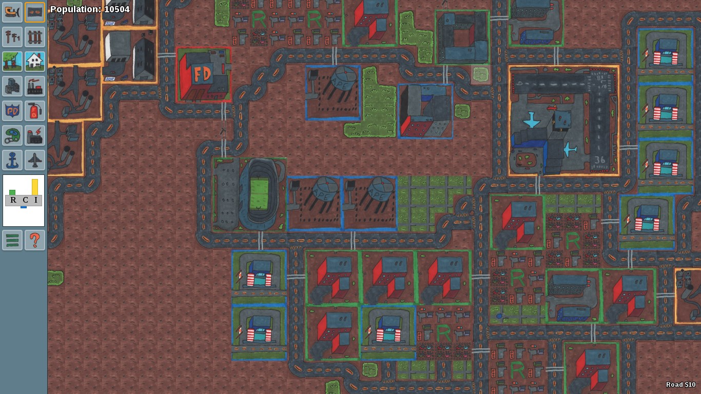 Ape City is purely a classic city simulation game, with no pay to play schemes and no annoying diamonds to sell. My goal with the game is to create an honest replication of the original city simulation game. Right now there is still a lot of work that needs to be done, so feedback is greatly appreciated. Check out the official Ape City forums (link provided within the game) for the latest updates on feature progression and the roadmap for what lies ahead. And by the way, Ape City is being created totally from scratch. I am not utilizing any code or assets from the open source Micropolis project.