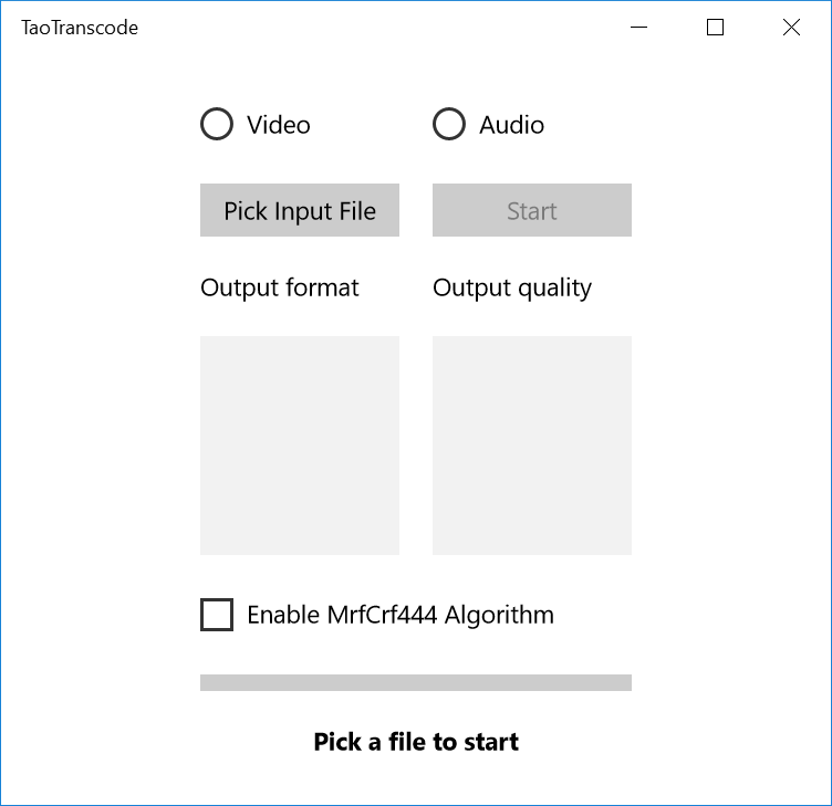 You can pick your source file, destination format and quality Setting. Additionally you can enable MrfCrf444, a pure Software algorithm to get best possible quality with longer encoding time.