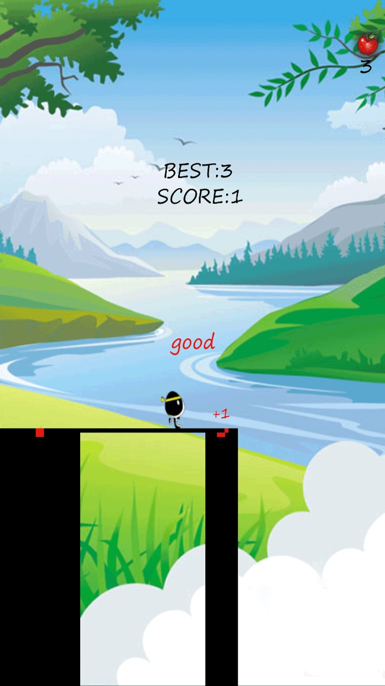 Bridge master a very fun little game, click on the screen at any location master will release a stick, the longer the touch of a long stick. Players please according to the width of the cliff to control the length of the stick, as far as possible to accurately hit the red point, there are points oh!