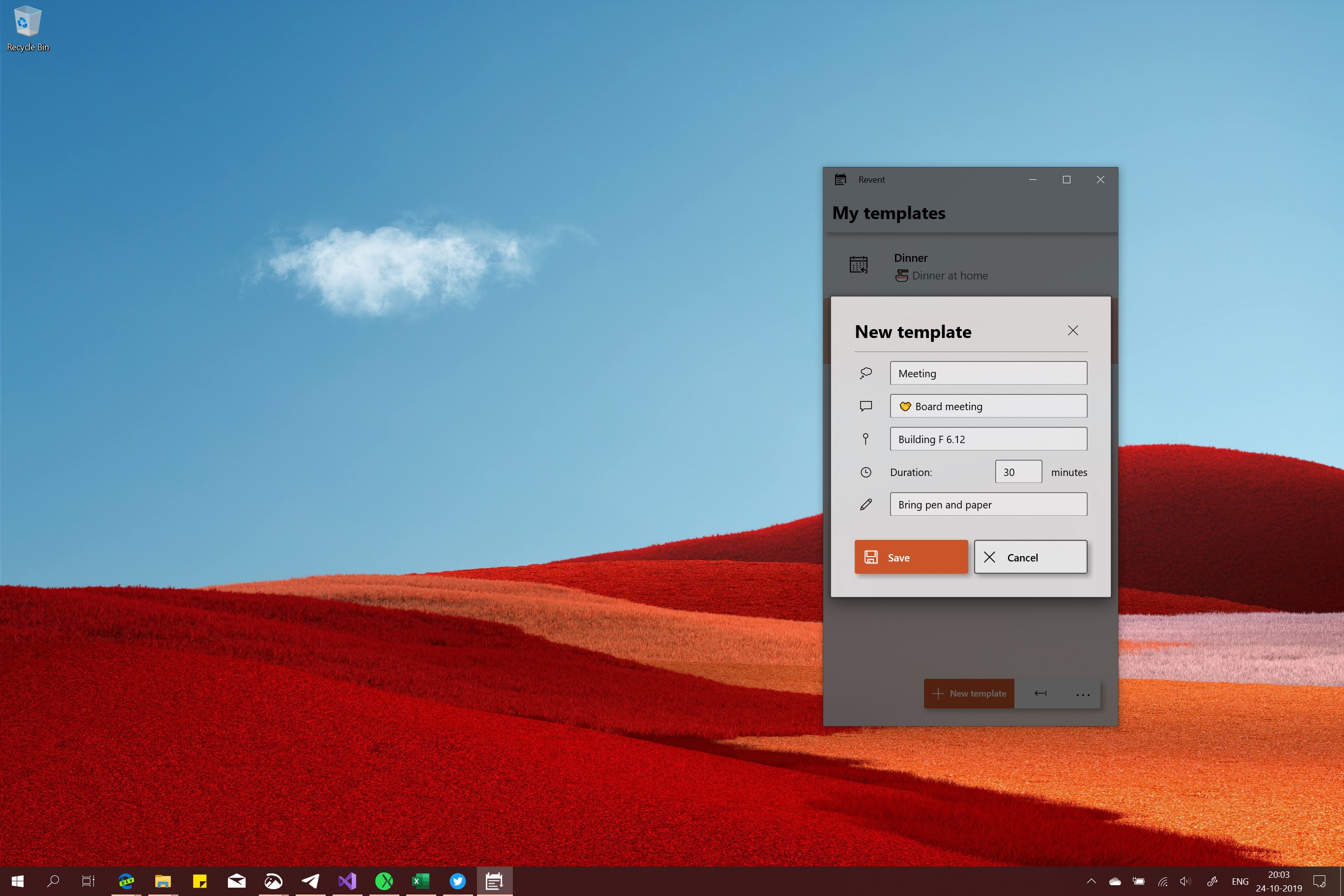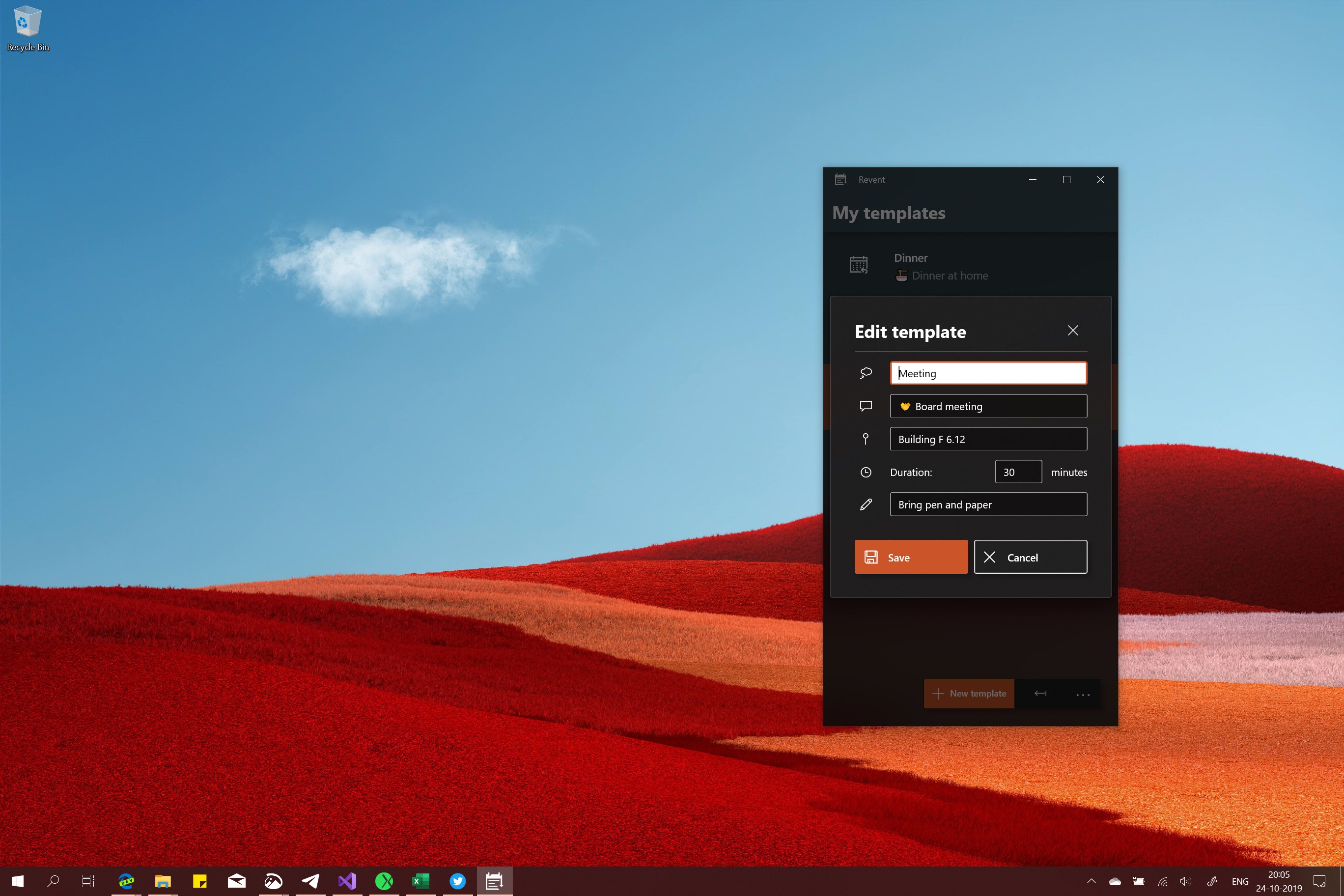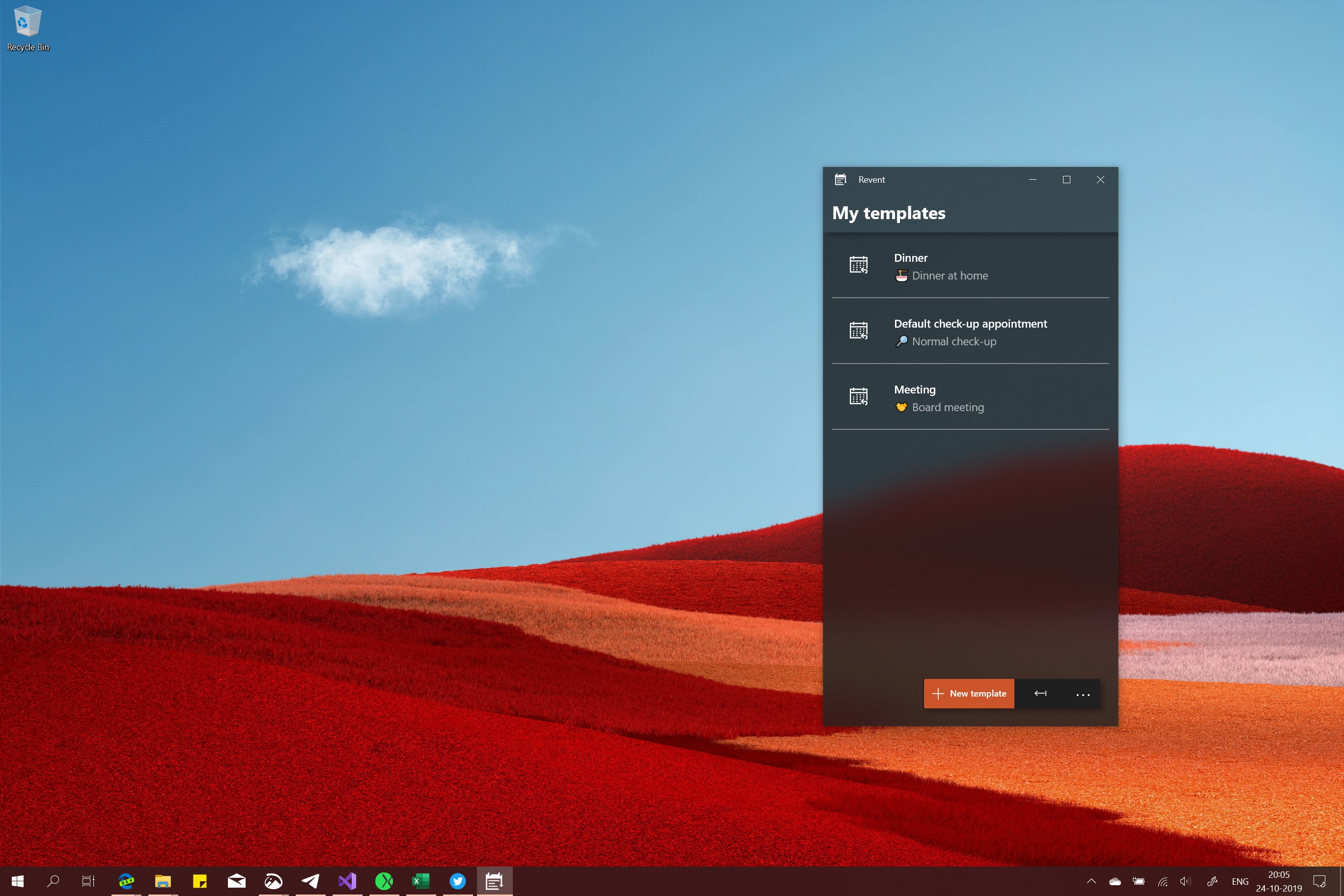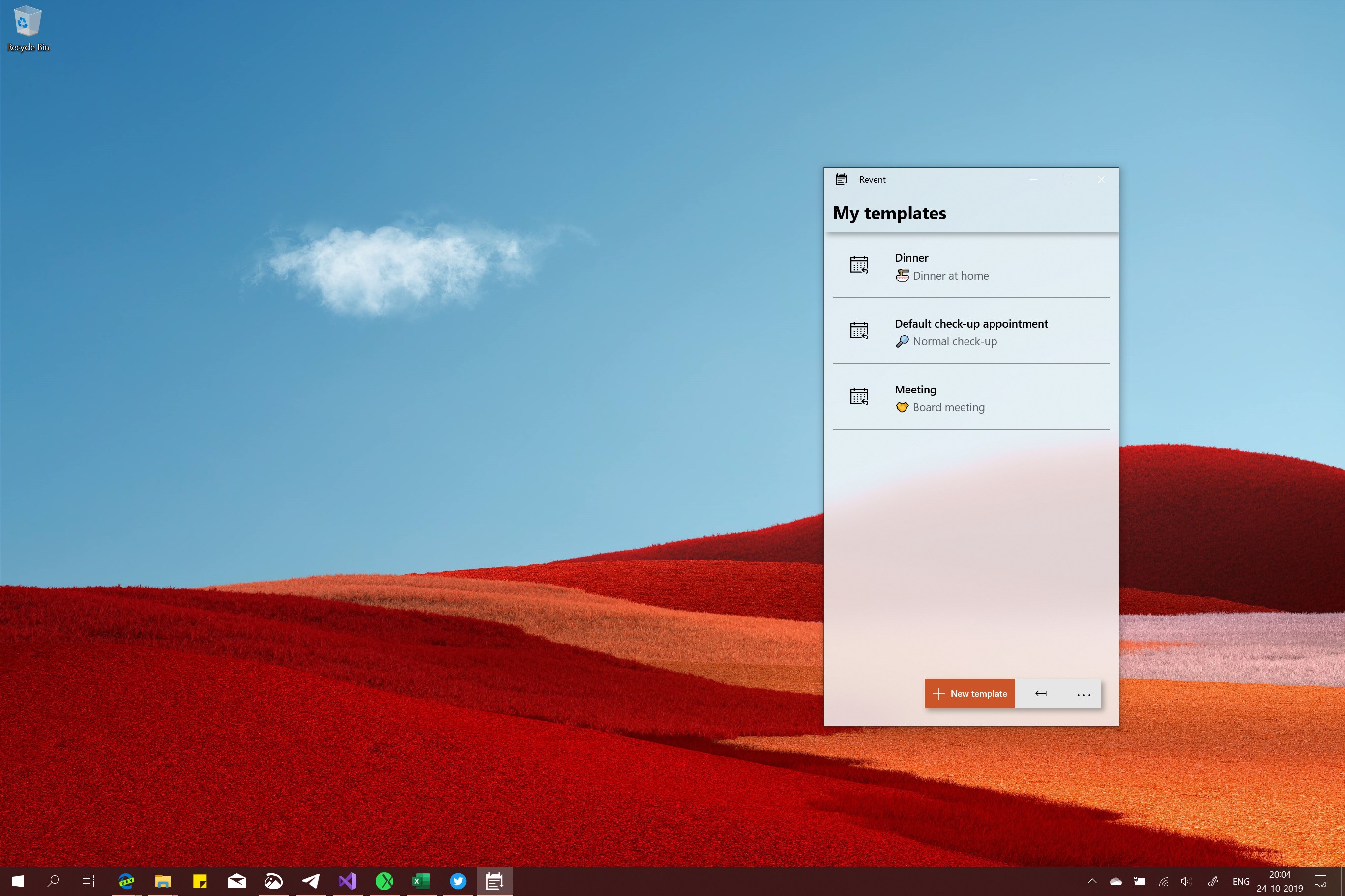 Have a lot of similar irregular meetings and appointments? With Revent you can create appointment templates so you don't have to enter the same pesky details over and over again.
