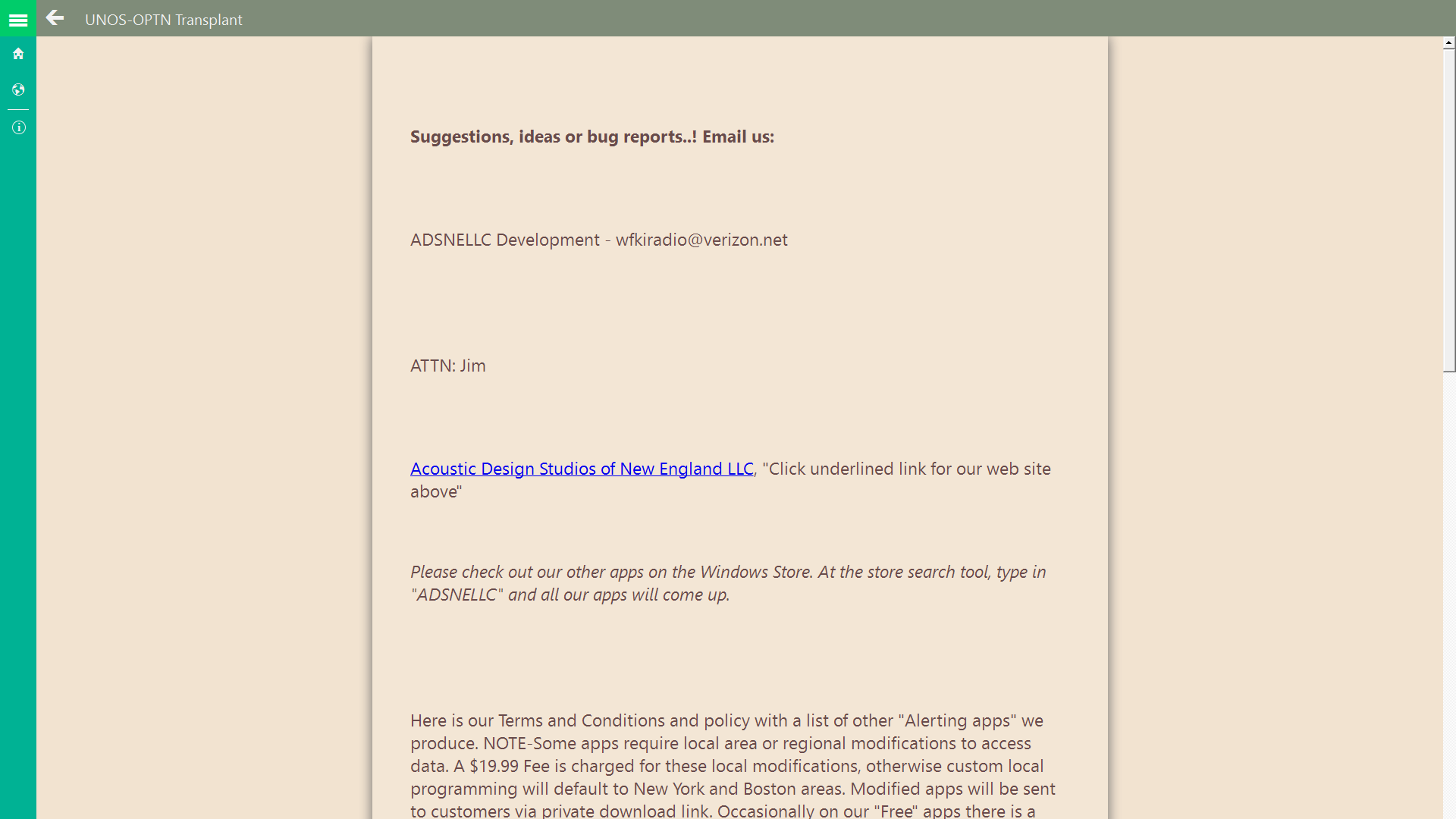 If you need a organ transplant in the United States ...this free app is for you. Built on the web architecture of UNOS (United Network for Organ Sharing) and the USHRSA.gov OPTN (Organ Procurement and Transplantation Network) this app gives the patient a real time data feed as to realistic waiting times of individuals on the waiting list though-out various areas of the United States for organ transplants. This app provides reports by state waiting list, regional waiting list, and current surgery centers approved in good standing. Free to the public. No Ads. This is a Windows 8.1 version.
