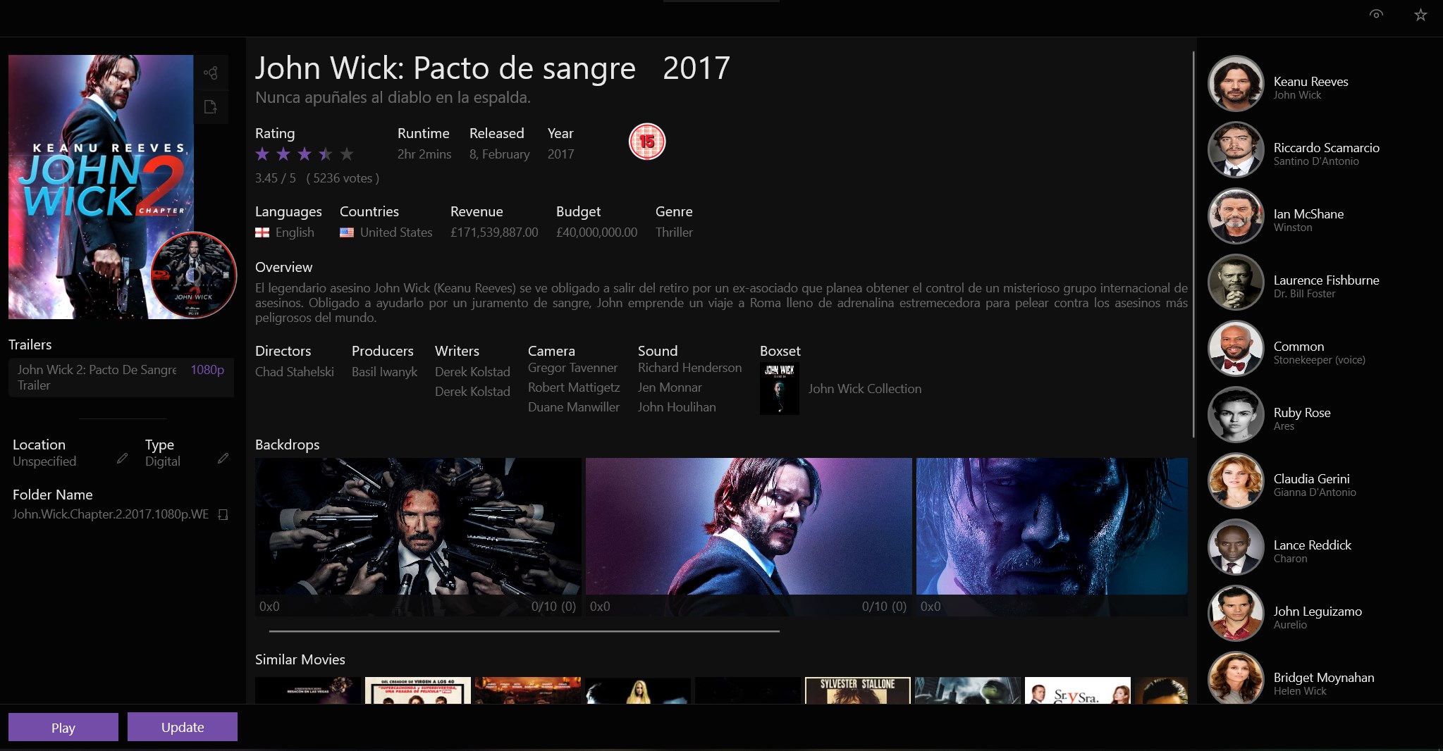 Add media by folder location, by Title or by BarcodeLatest movie, cast, interviews and media release newsPhillips Hue Light ControllerCinema ShowtimesSocial MediaExport your collection to CSV or XMLDetailed Movie and Actor InformationLatest TrailersPersonalise your media with FanartMany other features