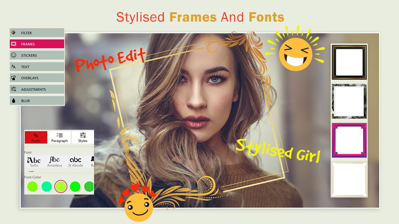 Create awesome collageFull feature photo editorAdd stickers and framesApply filters