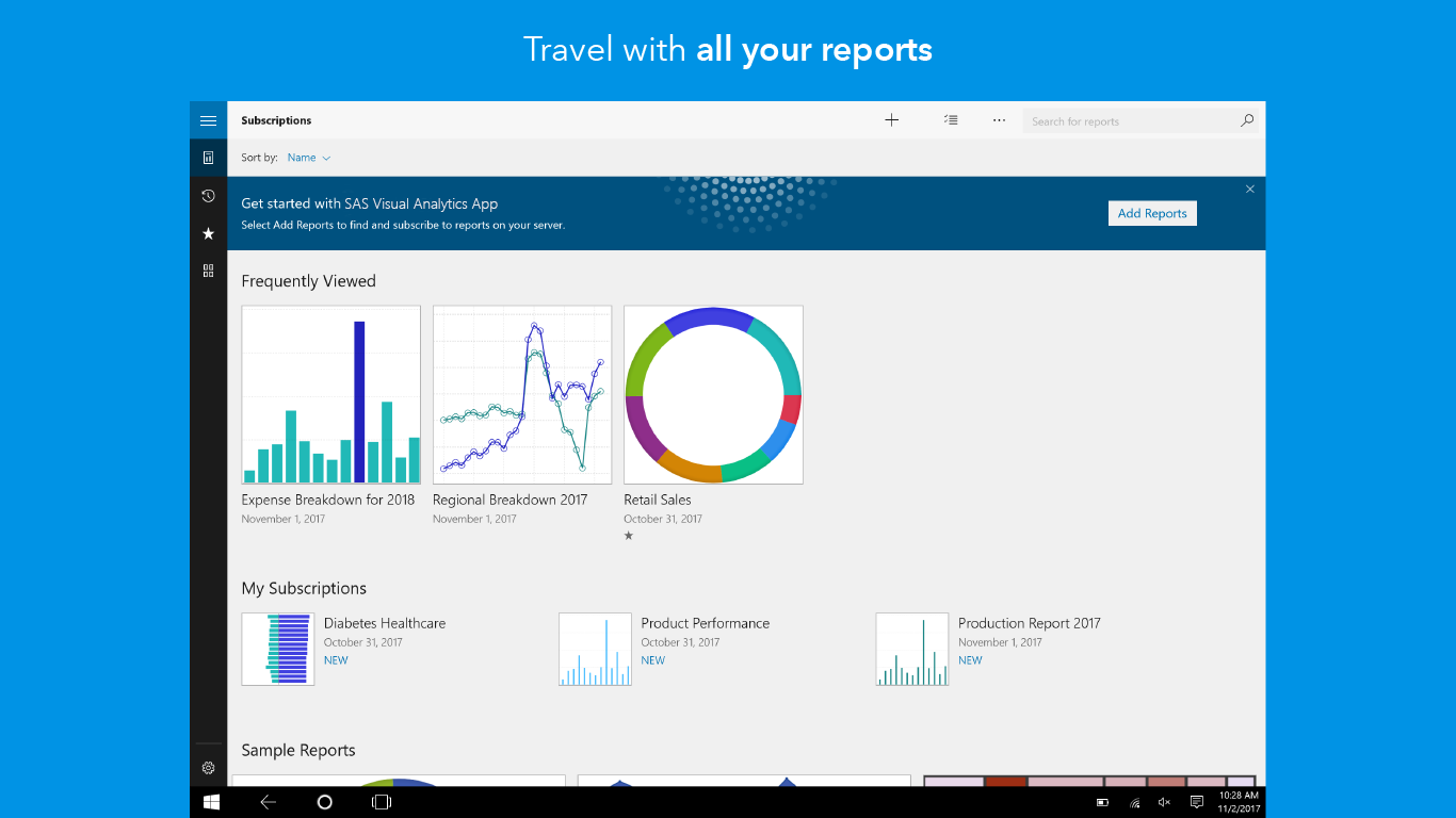 SAS® Visual Analytics empowers decision makers with business reports and dashboards anywhere, anytime! SAS® Visual Analytics App, part of the SAS Visual Analytics product family, enables you to view and interact with reports that can contain a variety of charts, graphs, gauges, tables, and other report objects.