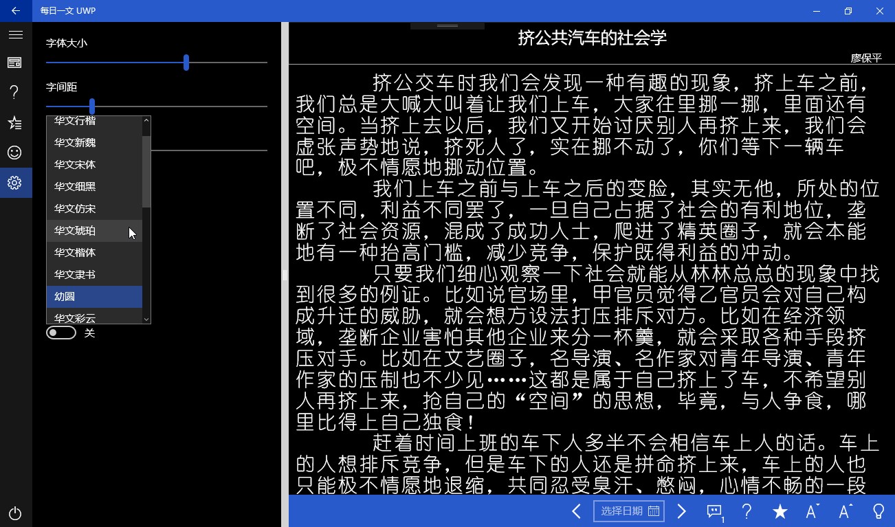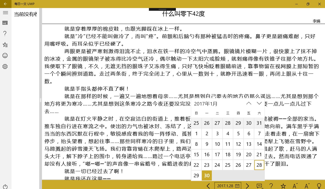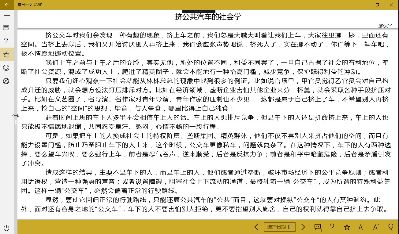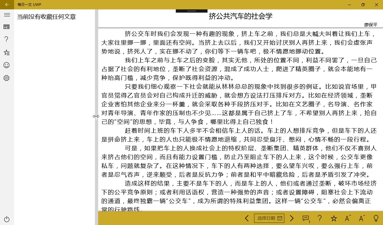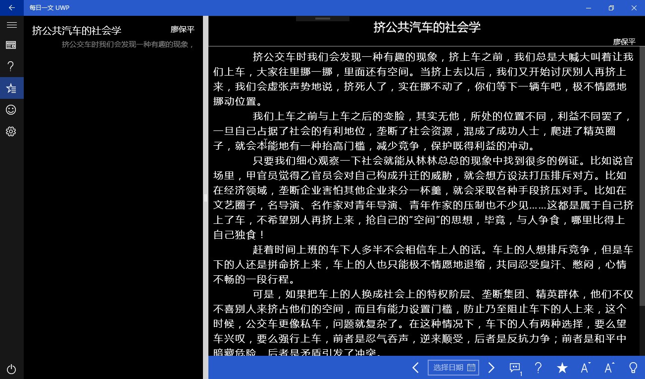 每日一文的第三方UWP应用,没有繁复的登录注册,没有复杂的算法,只有简简单单的阅读。