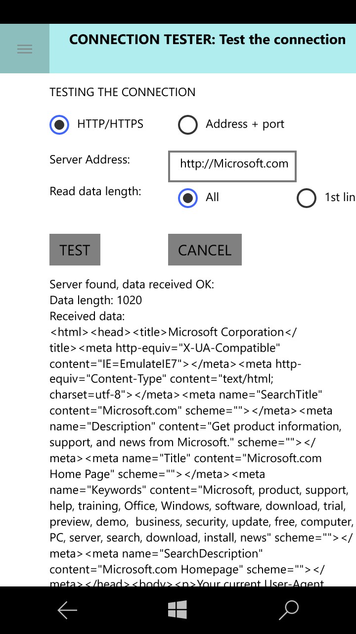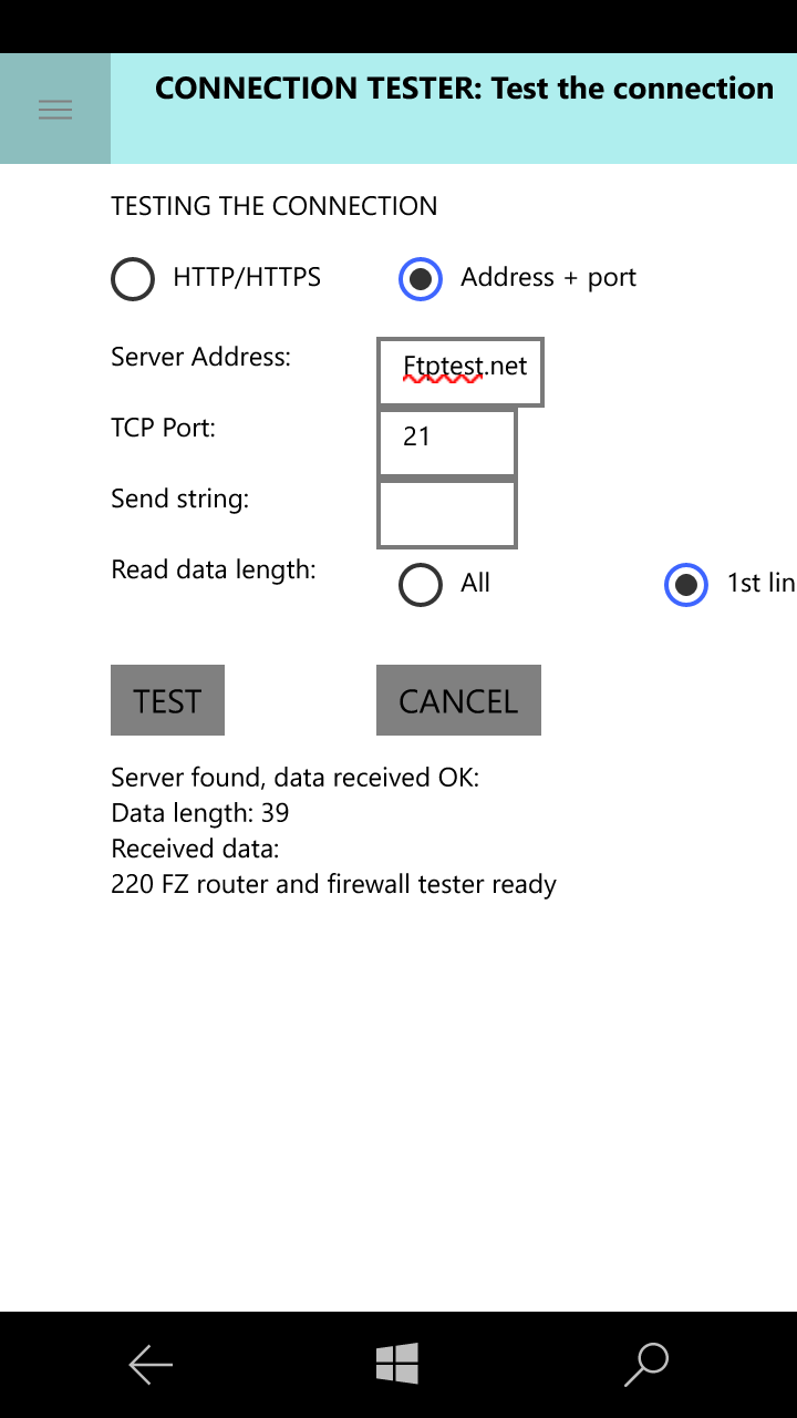 TEST: Checks the connection to a user-defined http server or a specific TCP port in a server.