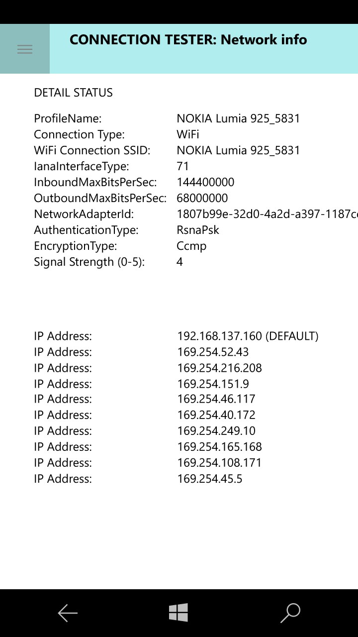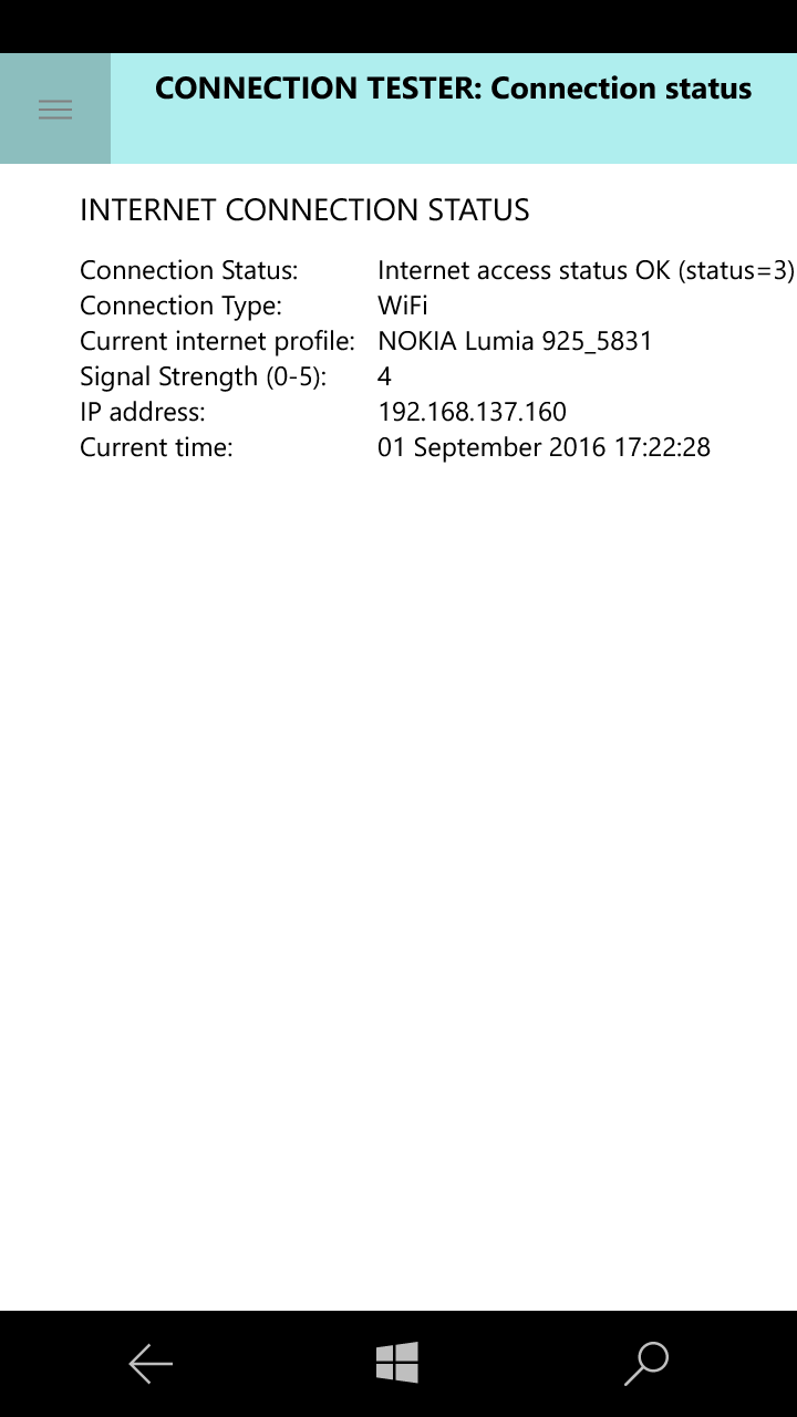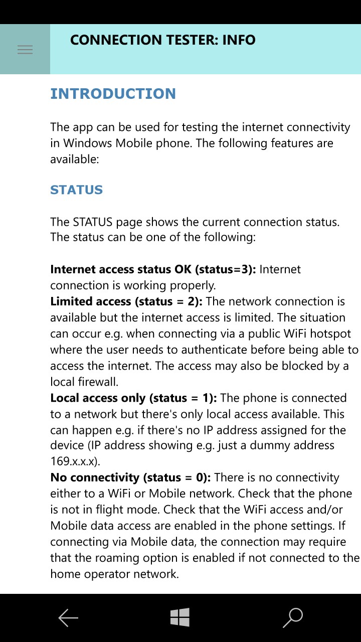 The app can be used for testing the internet connectivity. The following features are available: