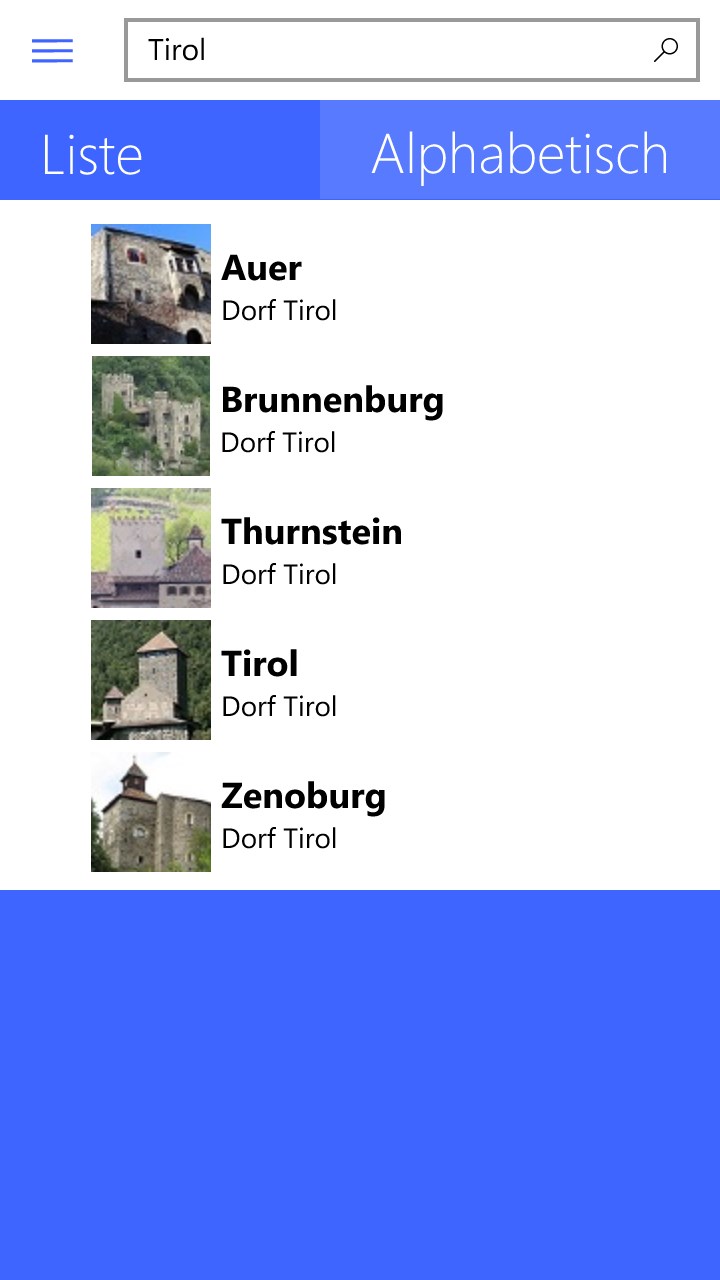 Für alle Reisenden, Burgenliebhaber oder einfach nur jene, die neugierig sind. Südtirols Burgen gibt eine Übersicht über die Burgen in Südtirol, zeigt die nächstgelegenen Burgen in einer Liste, wie in einer Karte an und gibt eine kompakte Zusammenfassung offline wieder, sodass keine Internetverbindung nötig ist.