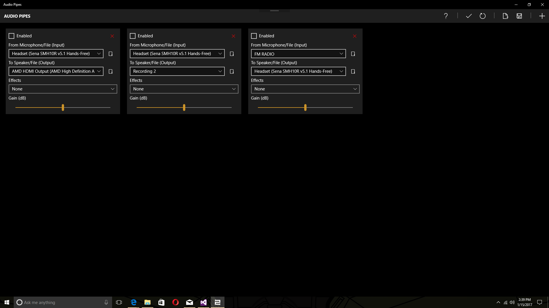 Audio Pipes allows you to route audio from any file or device to another file or device on your computer. This enables a wide variety of potential uses such as: