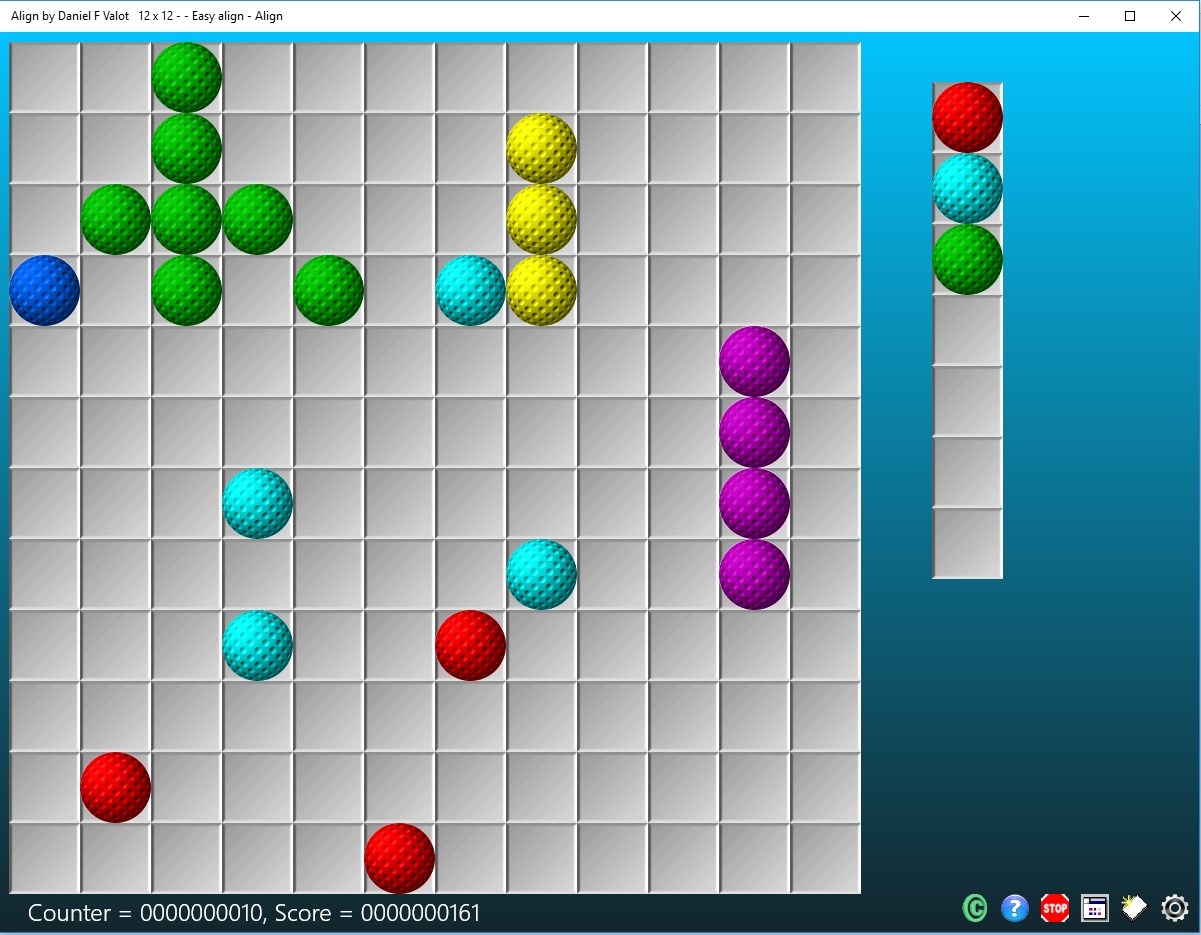 The Align Game objective is to arrange same color balls in a straight Align of five (or more), while three to seven new balls come on every turn.