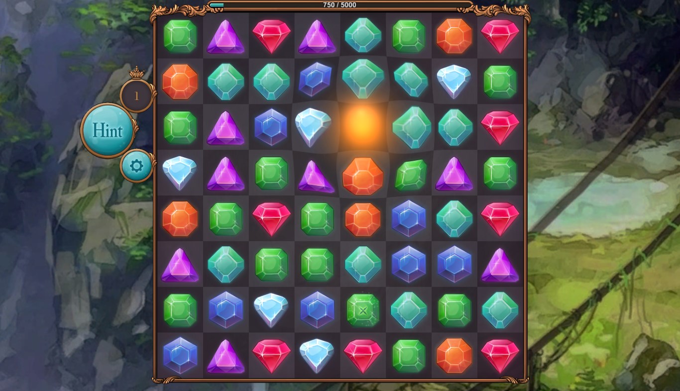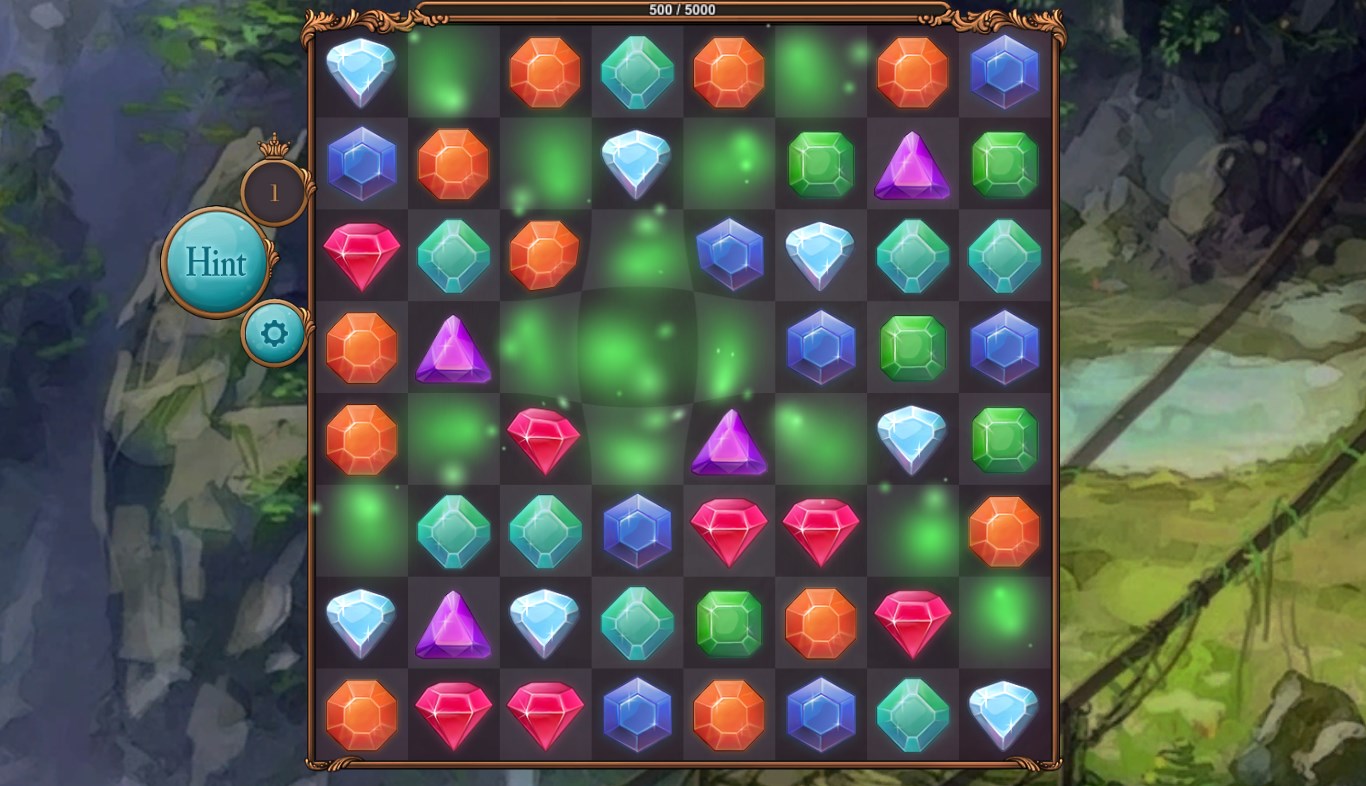 Jewels: Secret Treasures - is a game of “match 3” genre in which you have to put the identical three gems in a row. You can only change the position of same gems. If you have collected more than 3 gems in a row, you get a special gem, with features that allows you to get a lot of scores. Every 15,000 scores increase your rank.